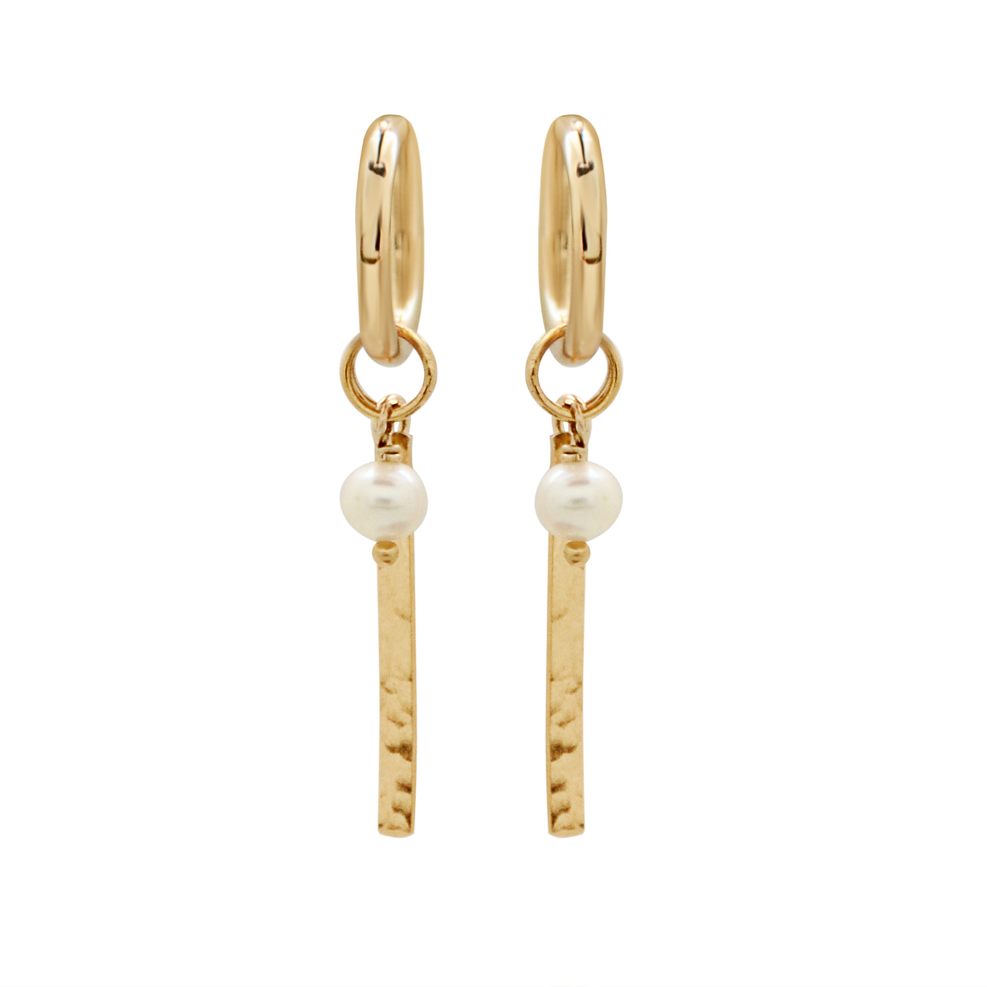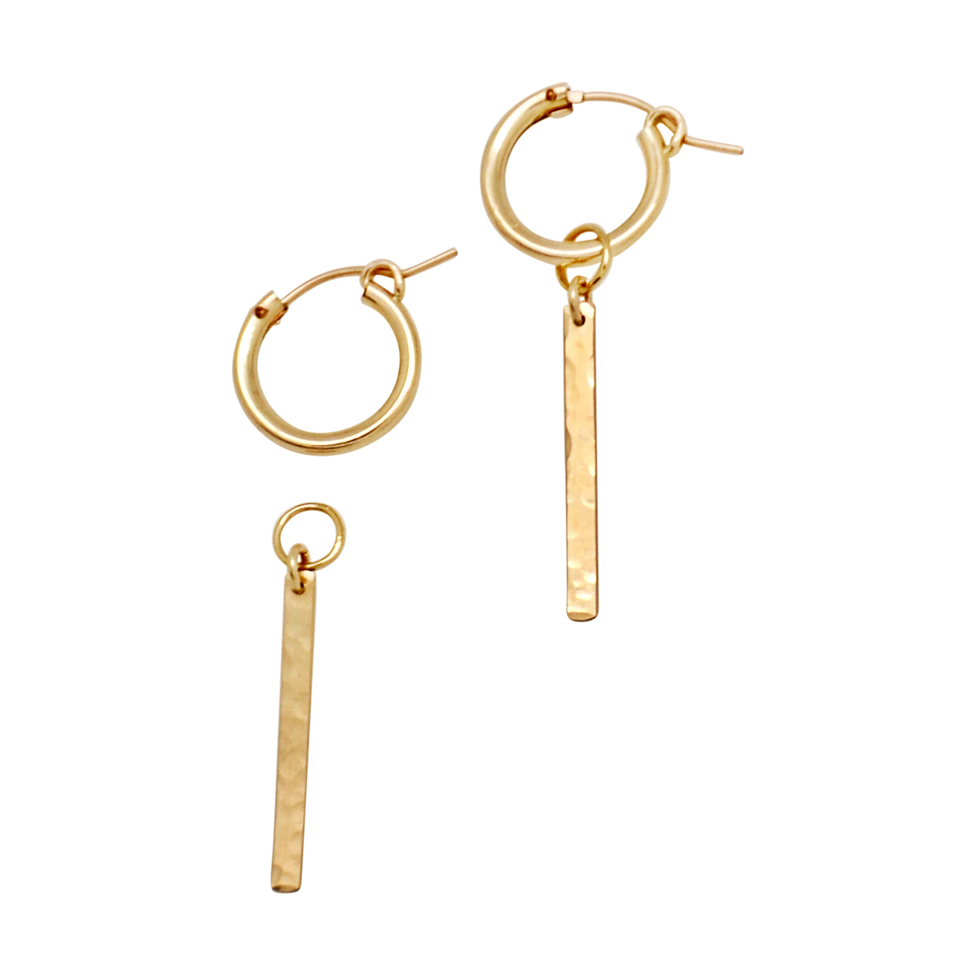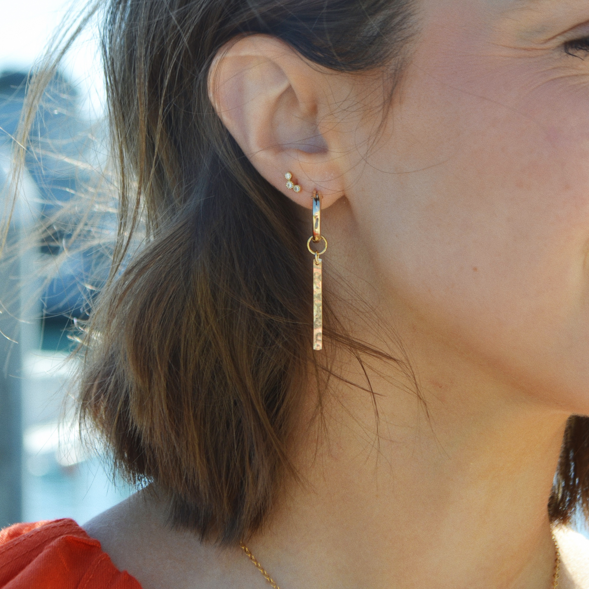 Classic and eye-catching, this beautiful hammered gold bar drop will elevate any look. Wear it alone for a minimalist look, or add some flair and layer it with multiple drops!