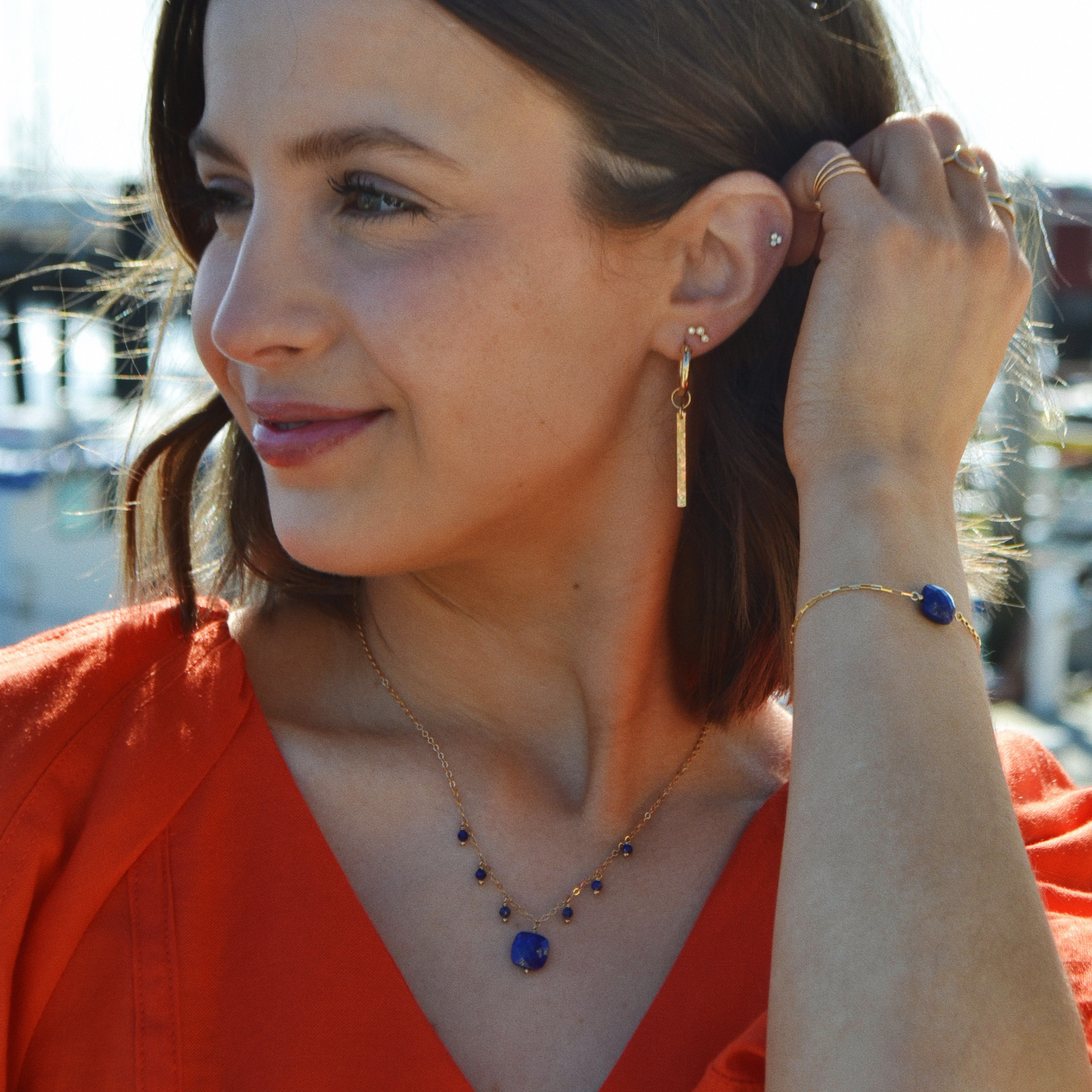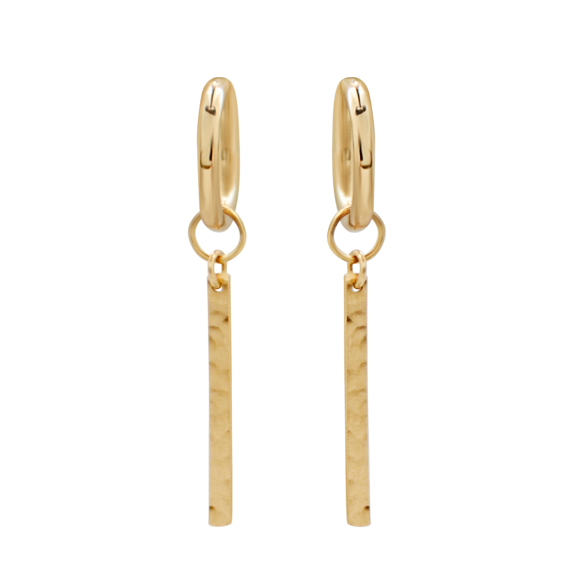 Our classic drop hoops - now available in a stunning new style. The bar drop hoops will take you from girls night, to the office, to the French Riviera. Versatility at it's finest and with so much style!