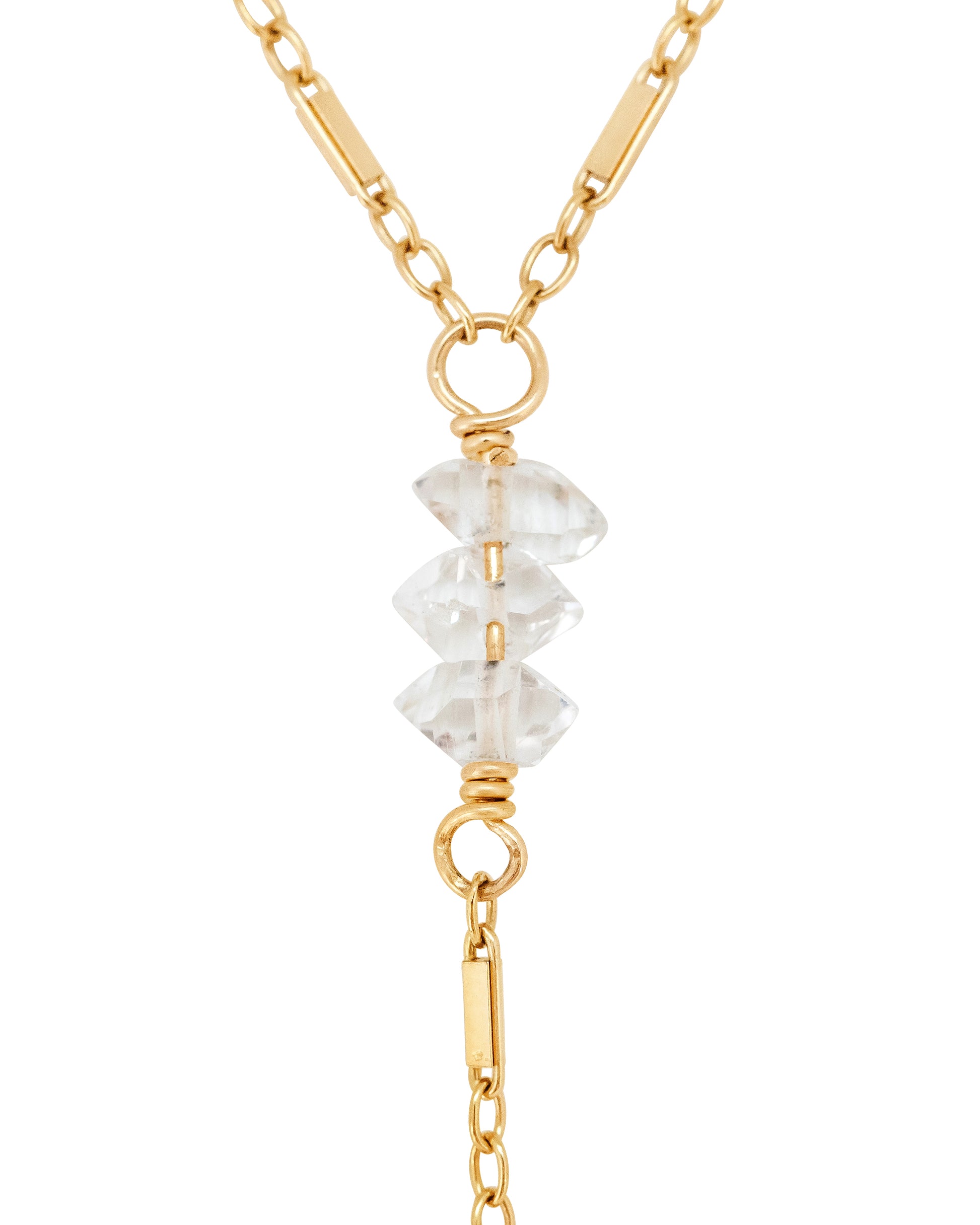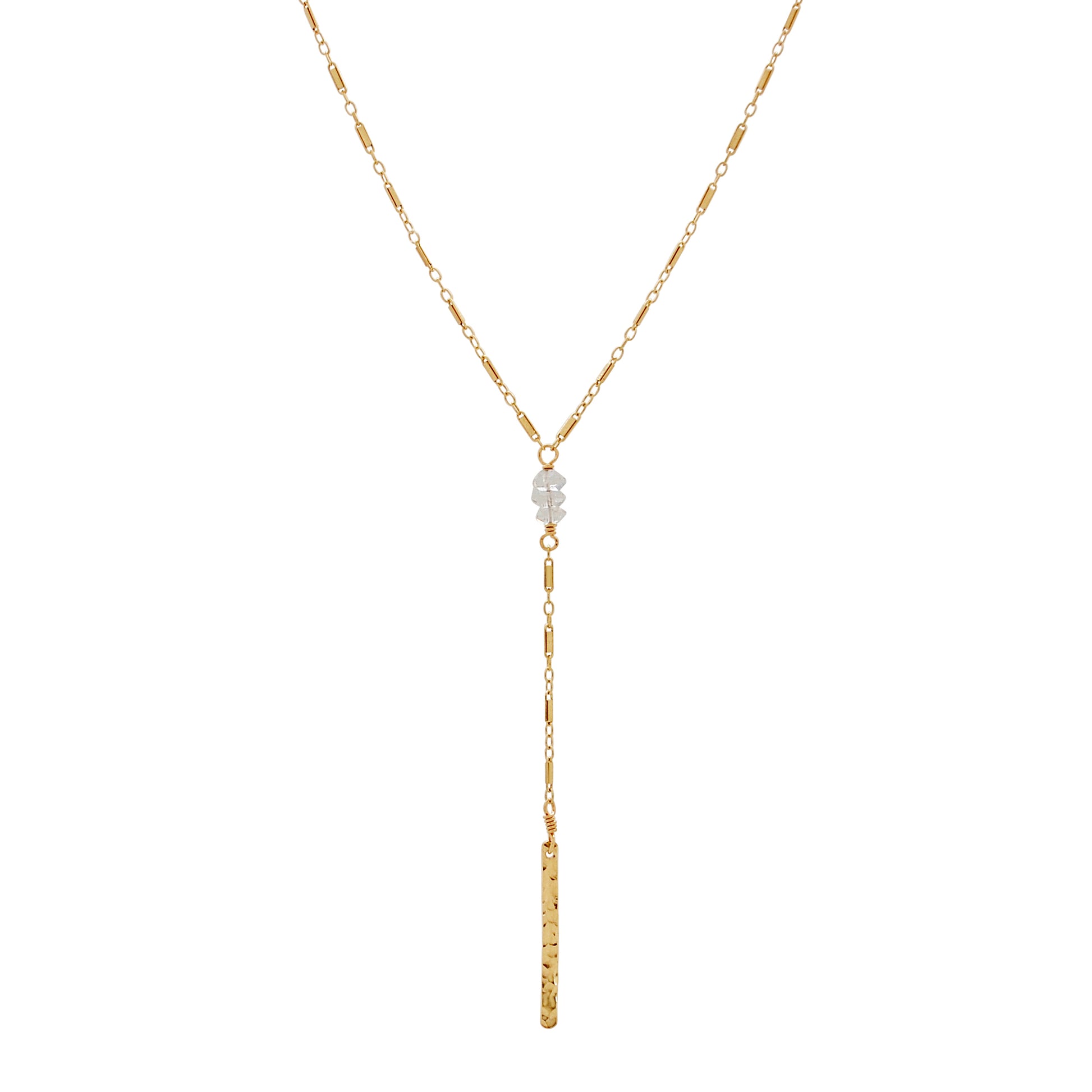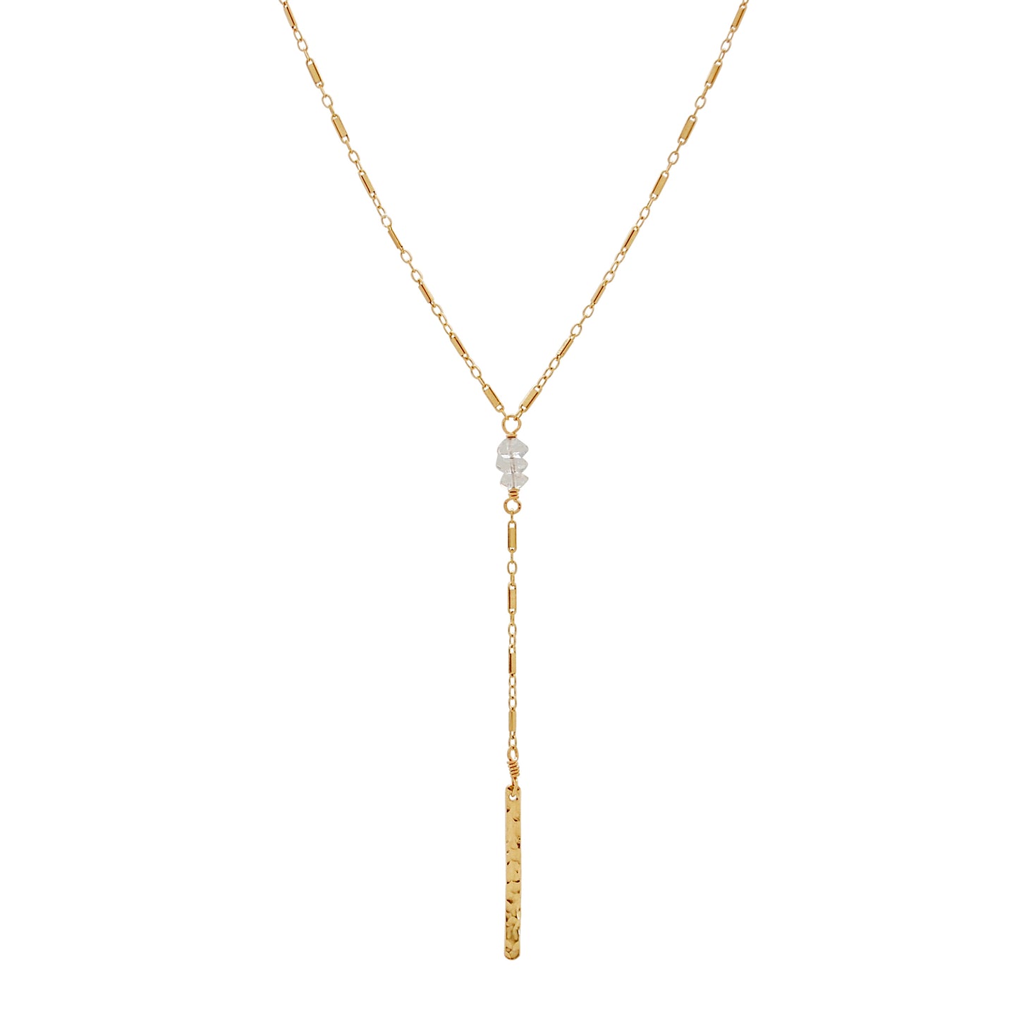 Bar chain Y necklace with herkimer diamond and hammered bar. Available in long or short version.
