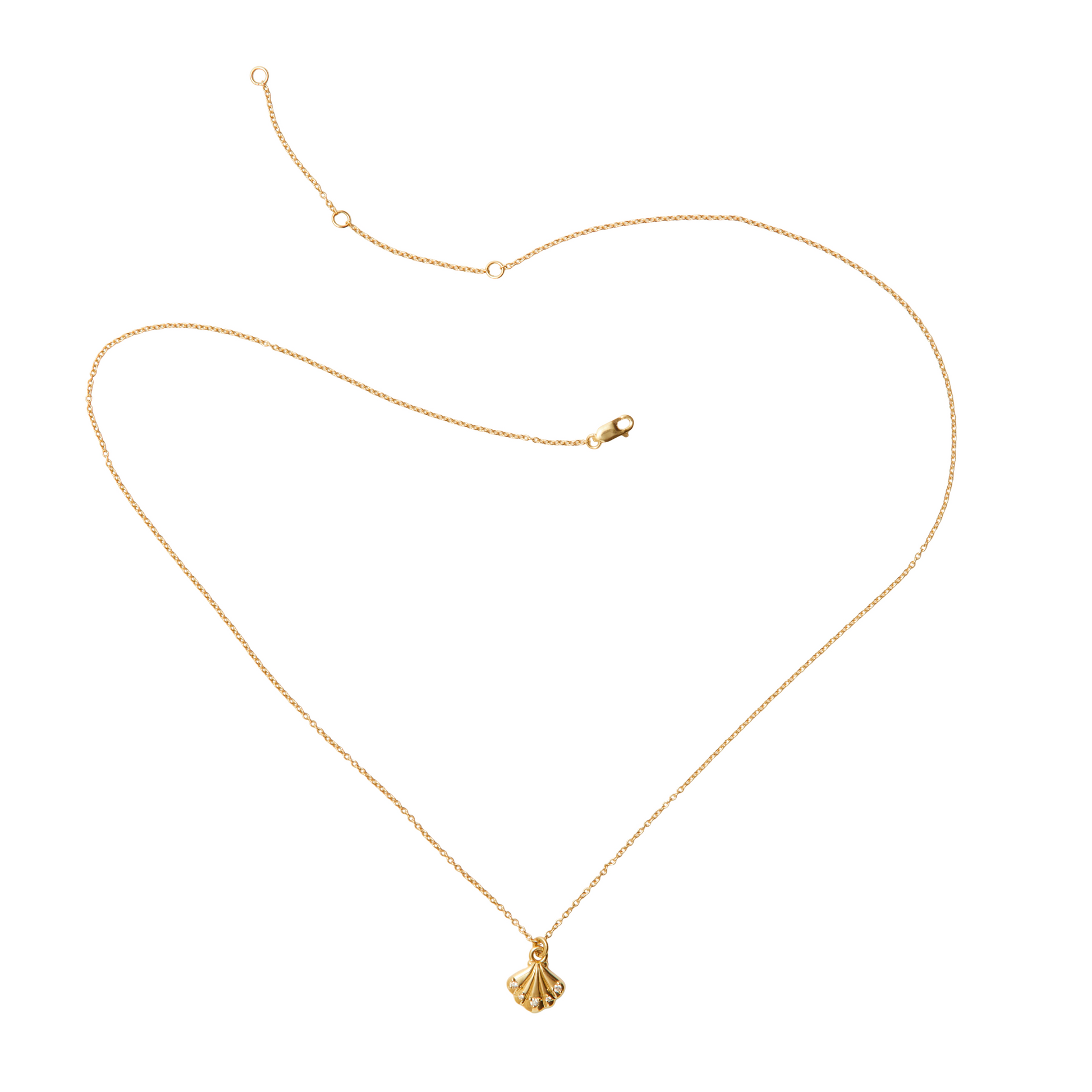 Shell pendant with pave diamond accents on dainty cable chain necklace.