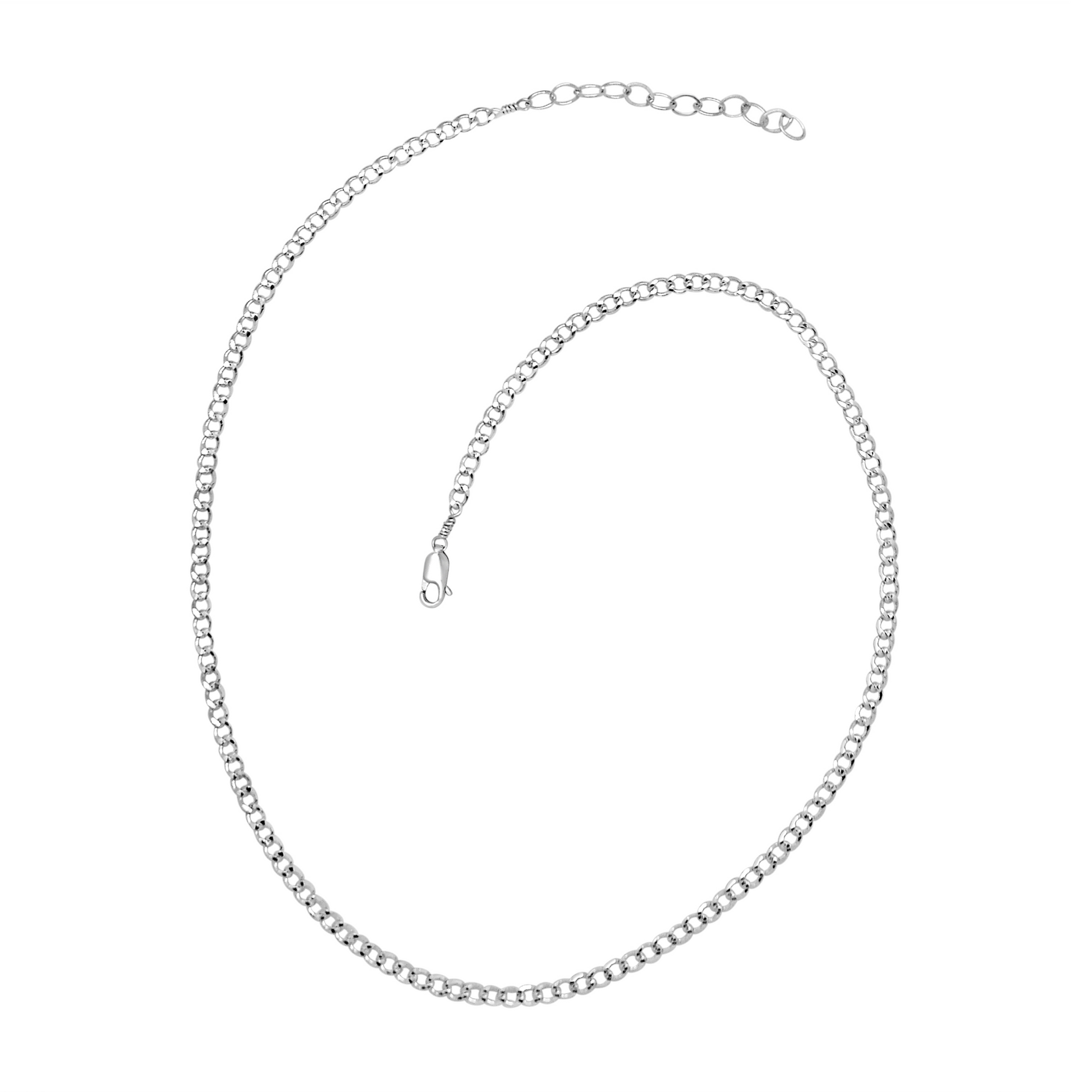 All around silver flat curb chain necklace.