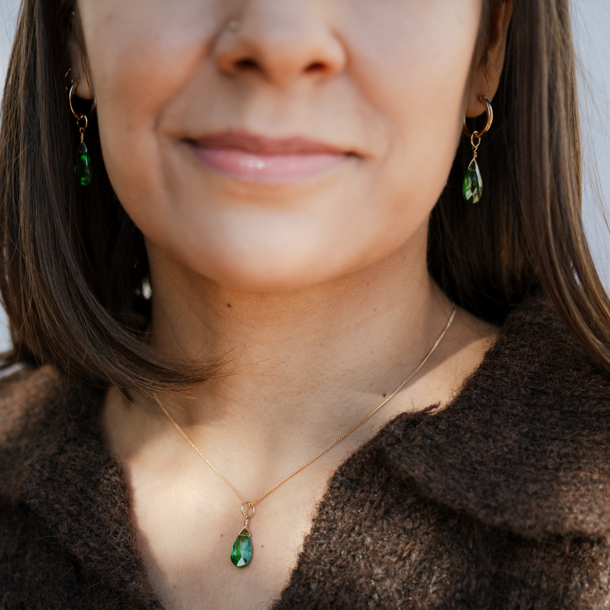 Part of our Customizable Collection - these earrings are truly versatile. With removable Drops you can wear these hoops alone or with their green zirconia companions. Or for a completely different look take one of your drops and slip it on any of our basic chain necklaces.