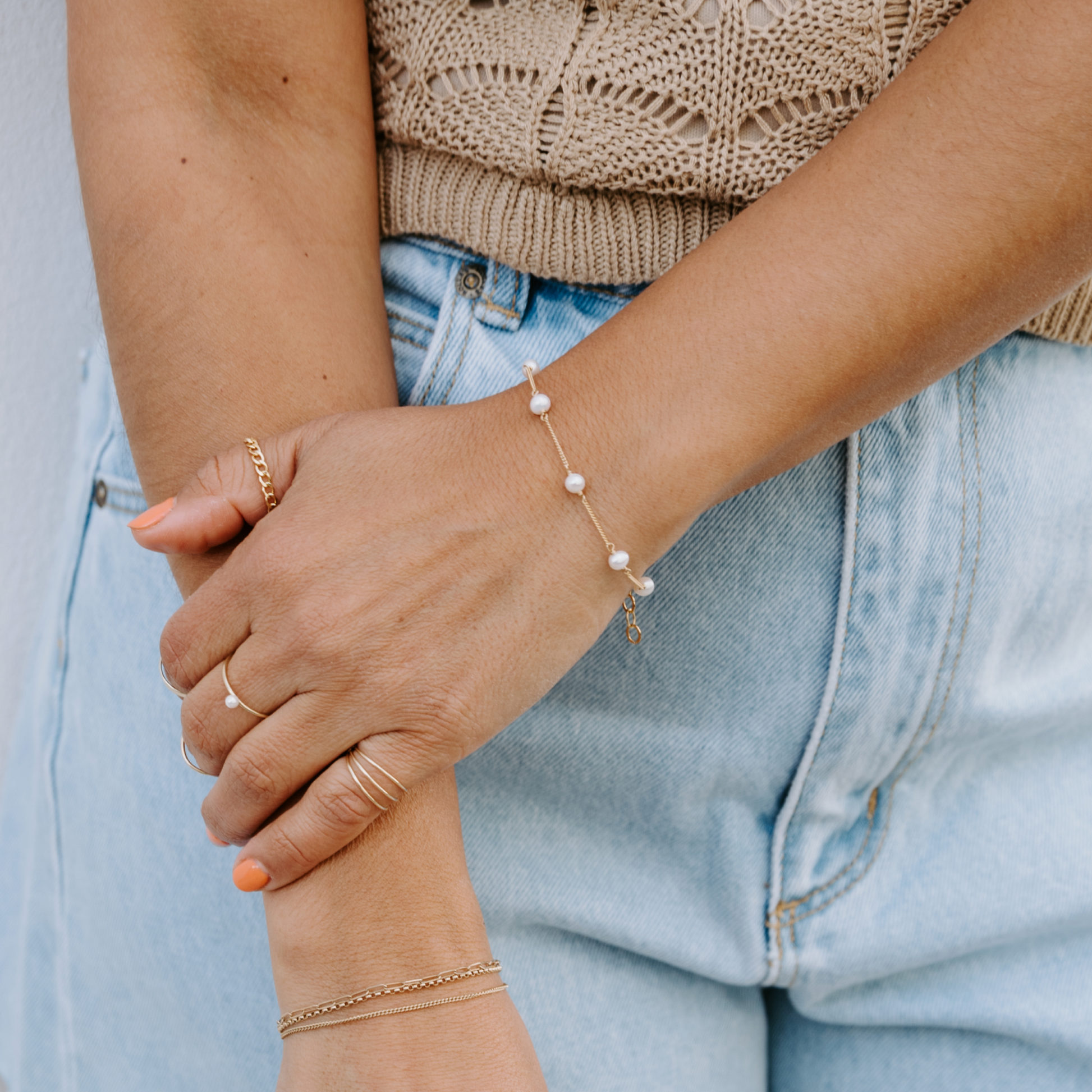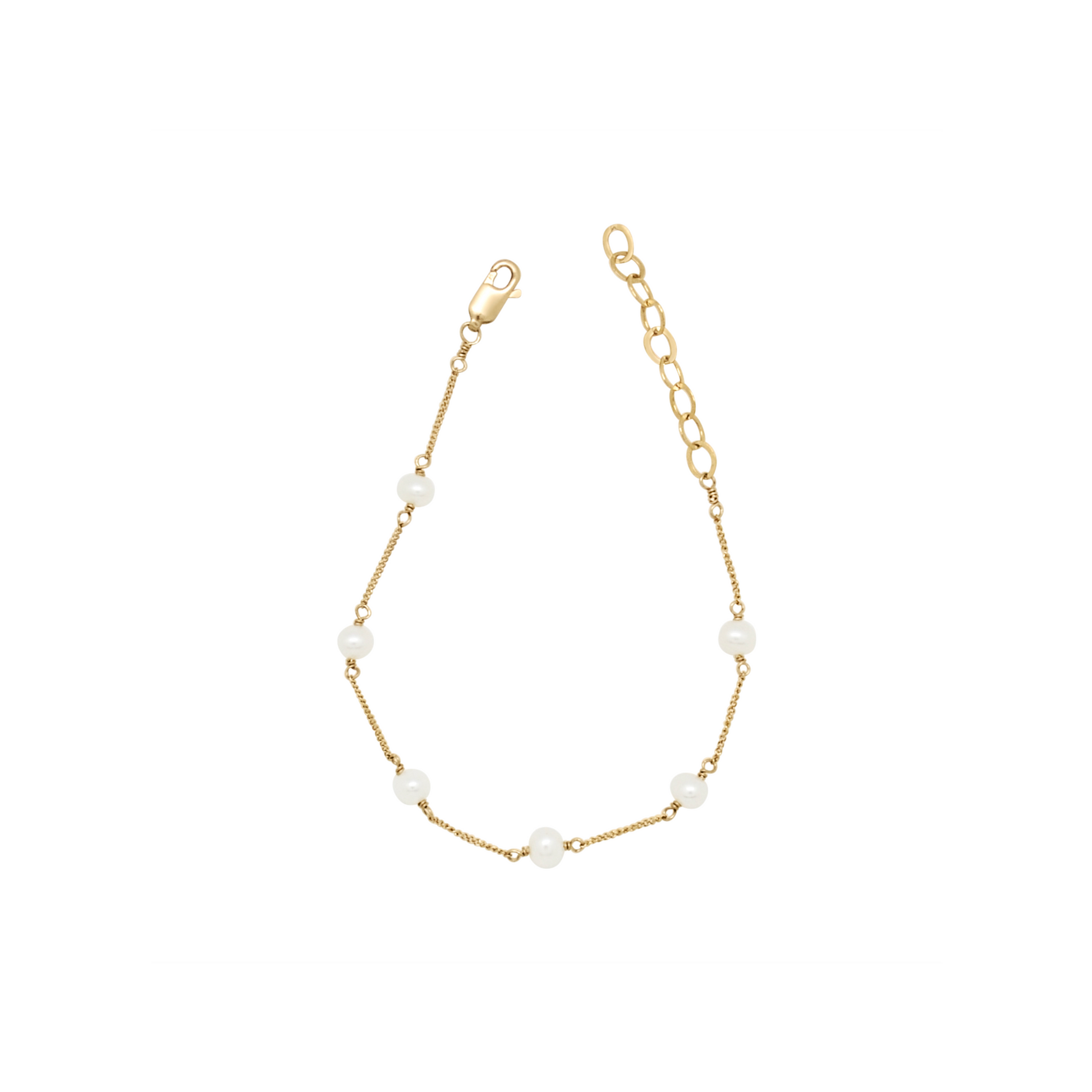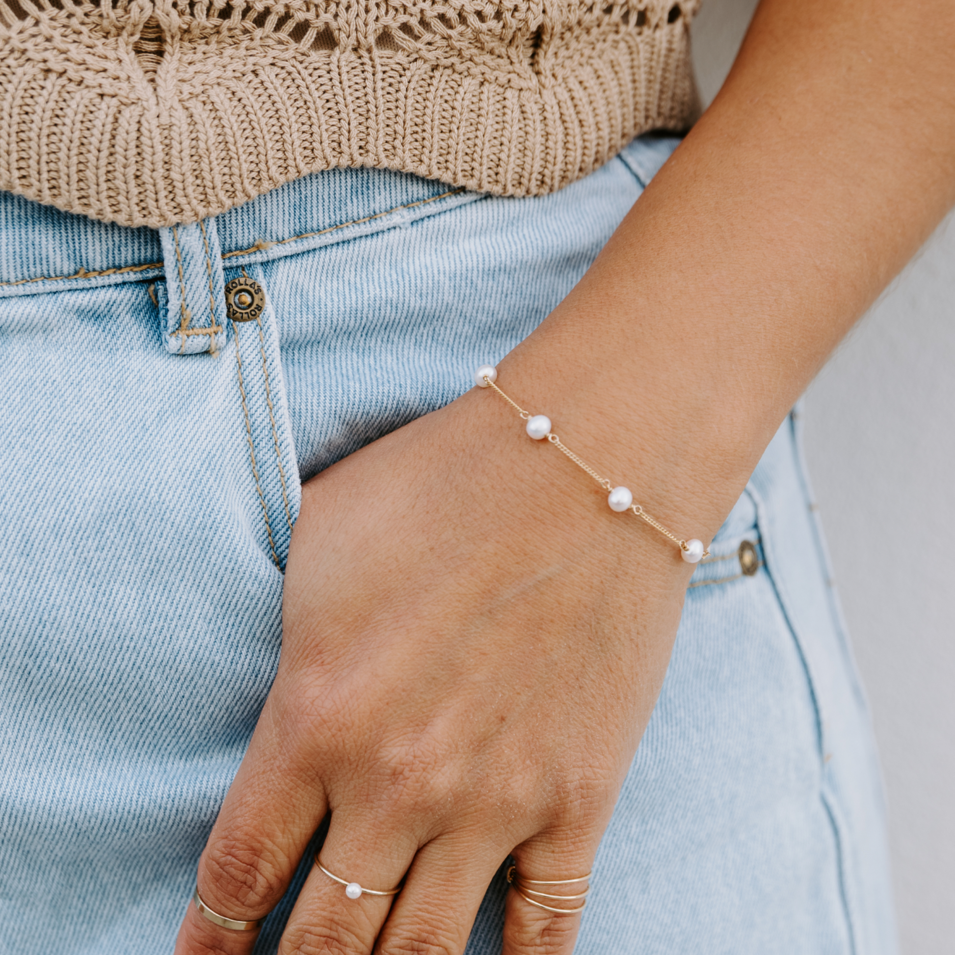Sophisticated and classic, this bracelet will never go out of style! Featuring six white freshwater pearls this bracelet pairs perfectly with our Eleanor necklace and earrings.