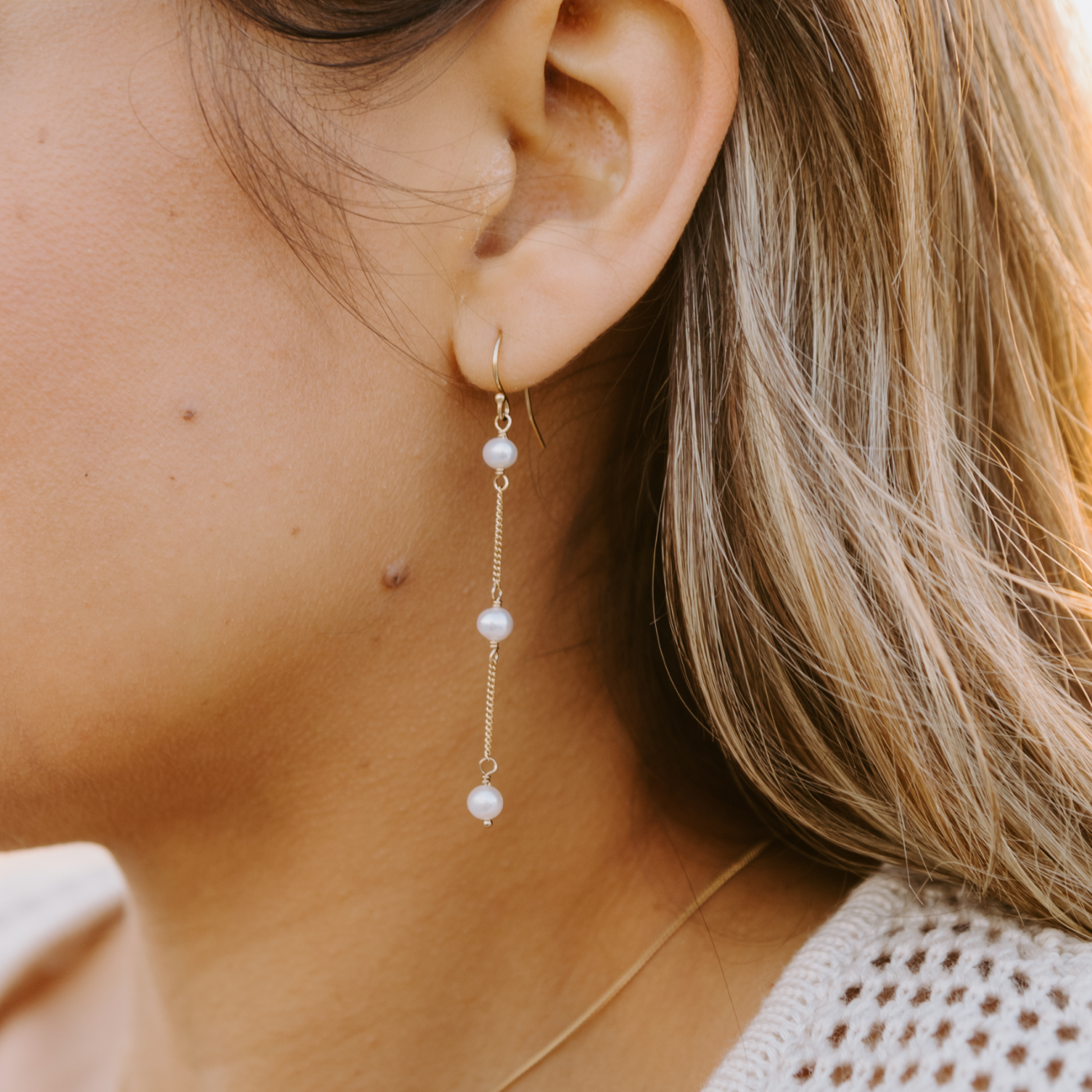 Sophisticated and classic, these earrings will never go out of style! Featuring white freshwater pearls these earrings pair perfectly with our Eleanor necklace and bracelet for an elegant look.