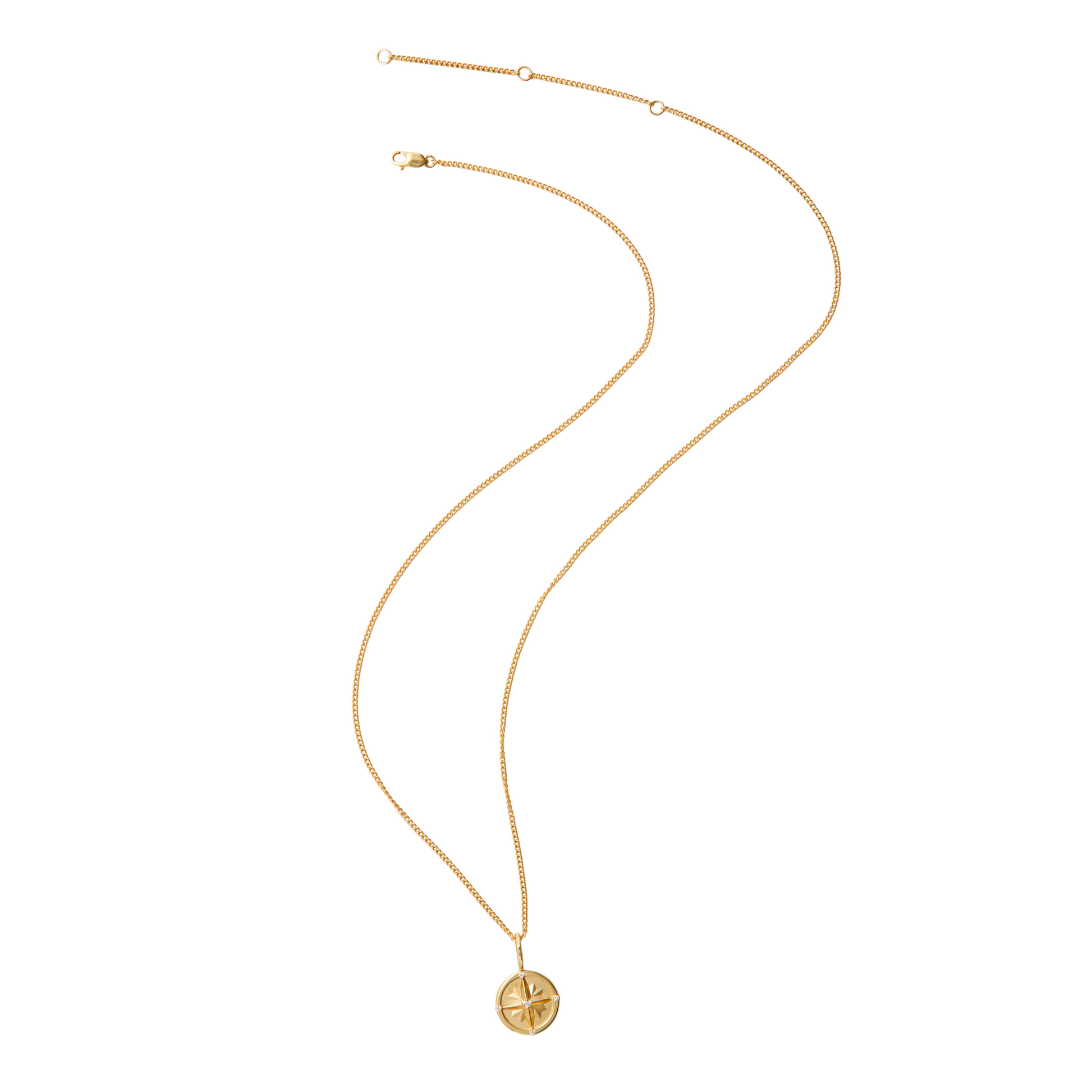 Removable compass pendant with pave diamond accents on dainty mini curb chain.