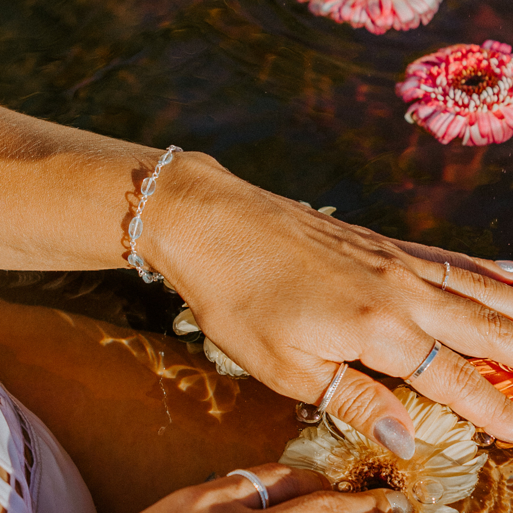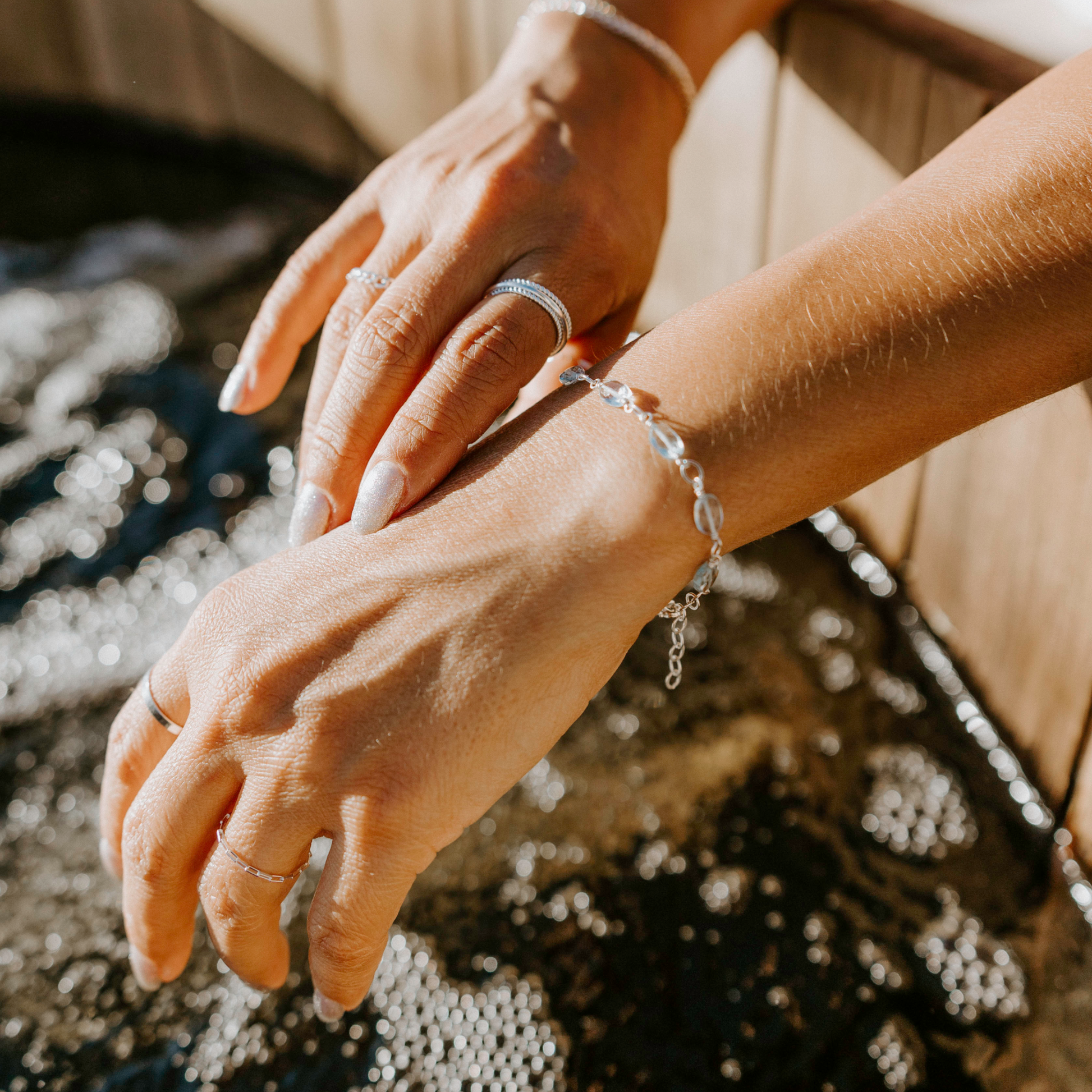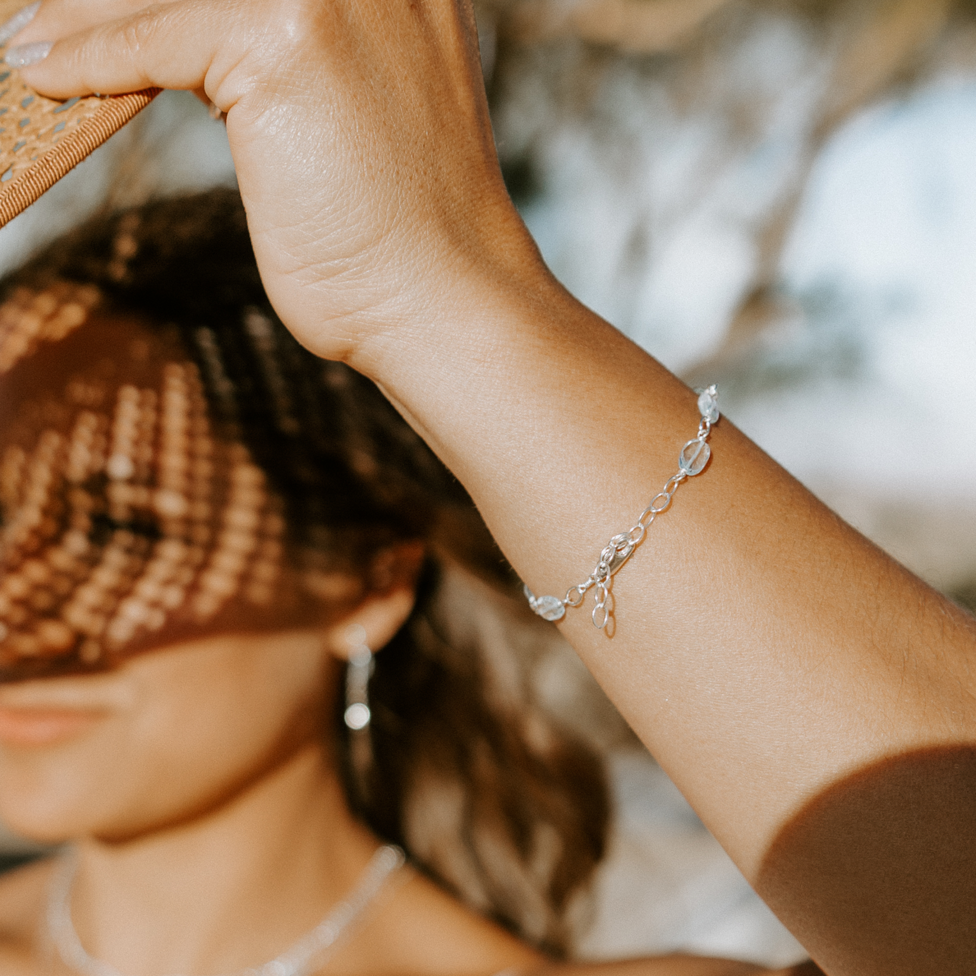 Time to liven up your jewelry box with this new addition to our silver collection. This unique bracelet is a show-stopper! Watch it sparkle in the light and day dream your afternoon away.