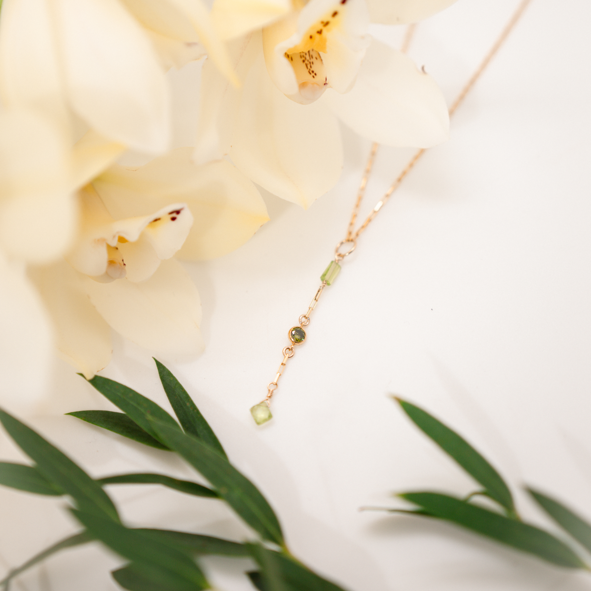 The perfect companion to our Ivy Earrings, this stunning necklace will make you feel like a masterpiece dripping in green and gold!