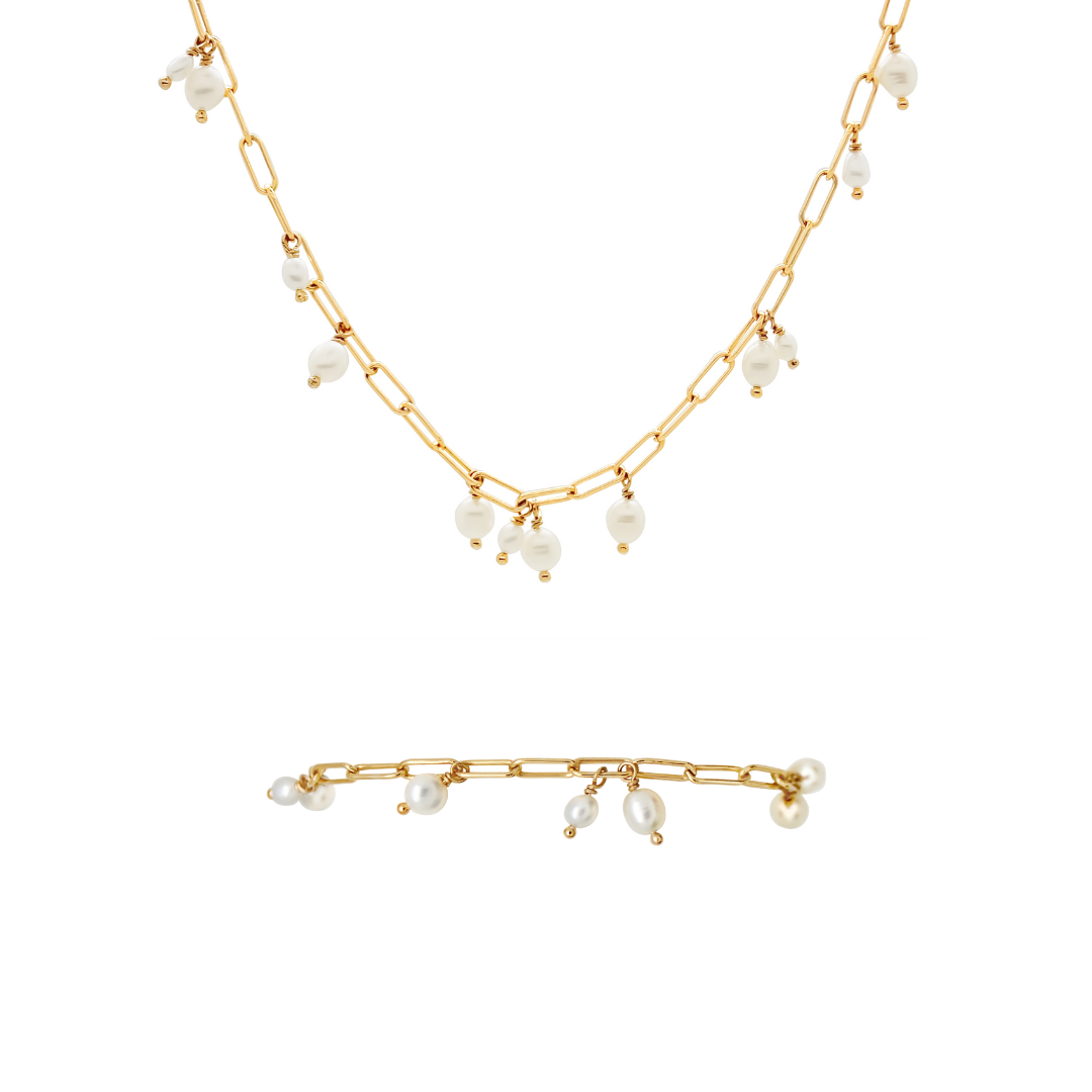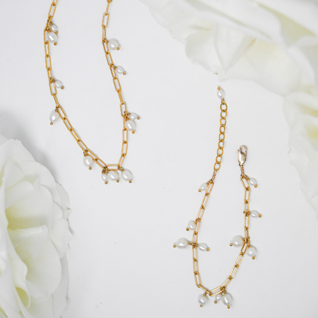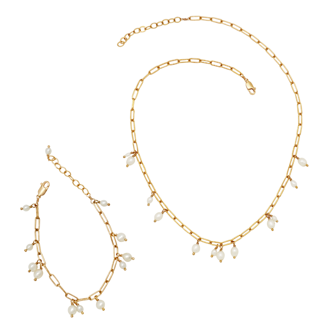 2 piece set includes gold filled and freshwater white pearl necklace and earrings.