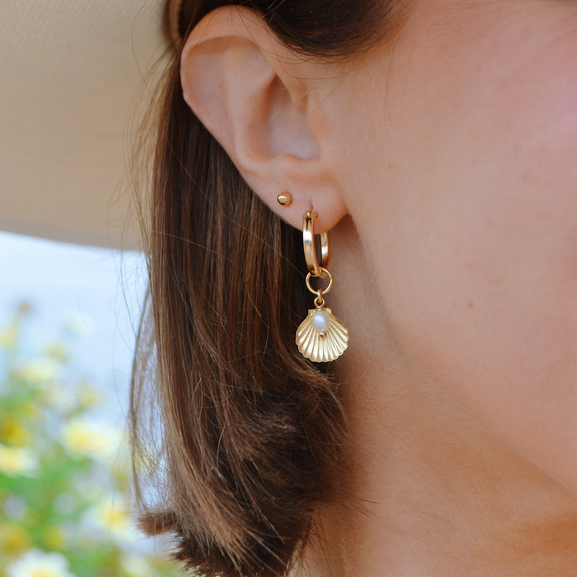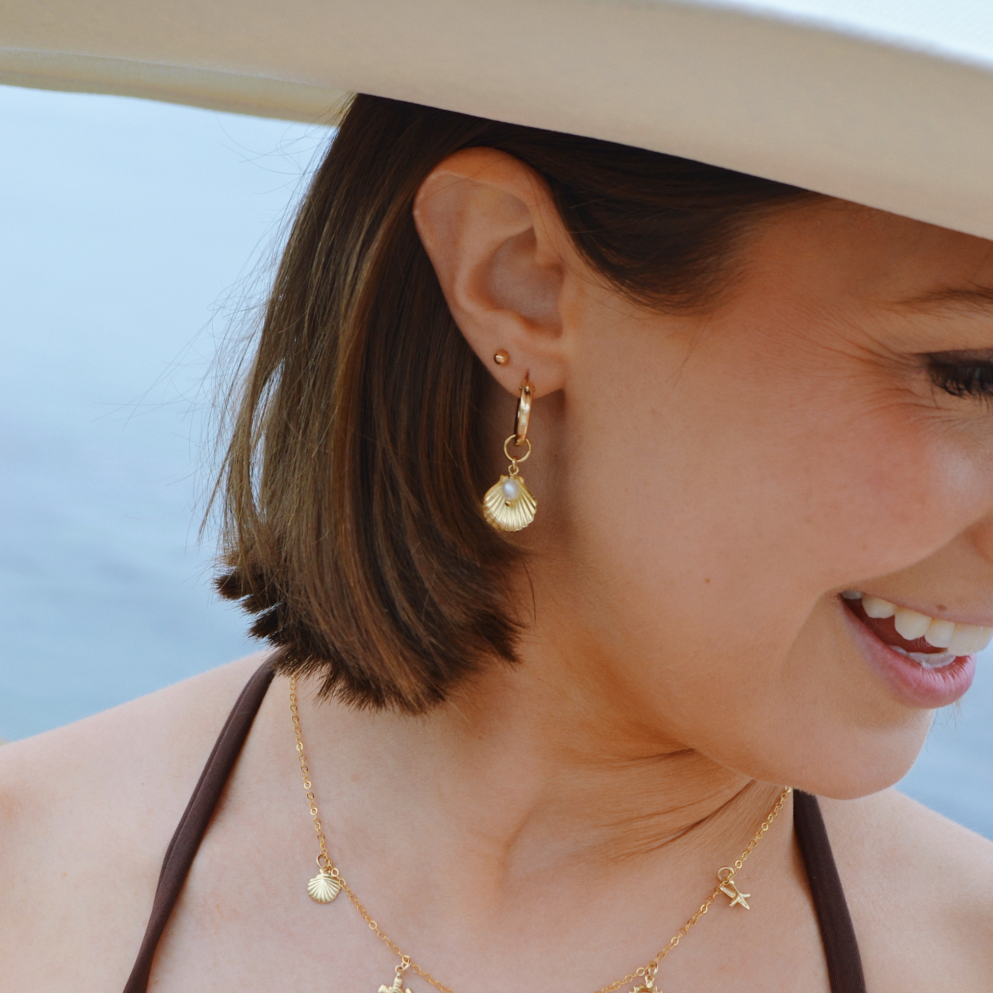 Part of our Customizable Collection - these earrings are truly versatile. With removable Drops you can wear these hoops alone or with their shell companion. Or for a completely different look take one of your drops and slip it on any of our basic chain necklaces.