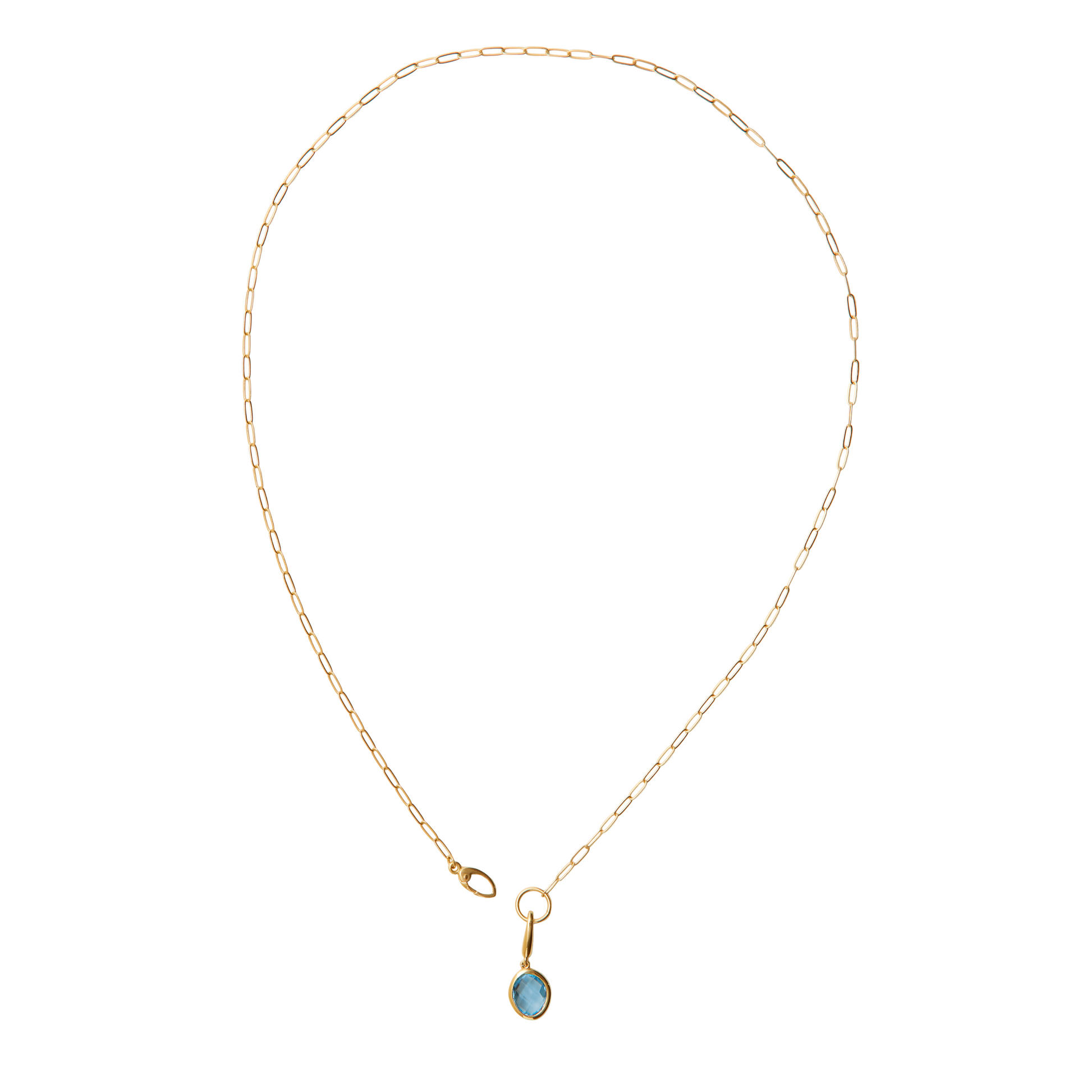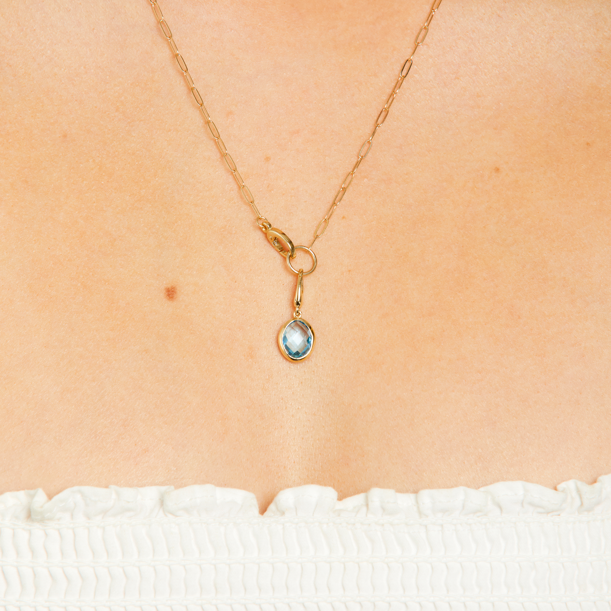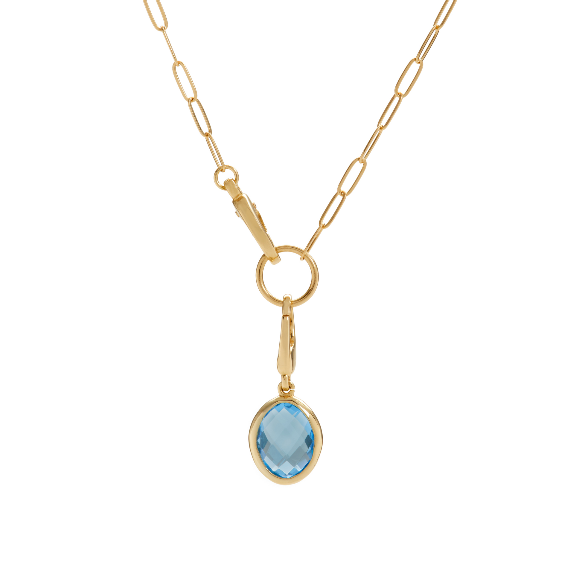 Paperclip chain necklace with clip-on london blue topaz charm.
