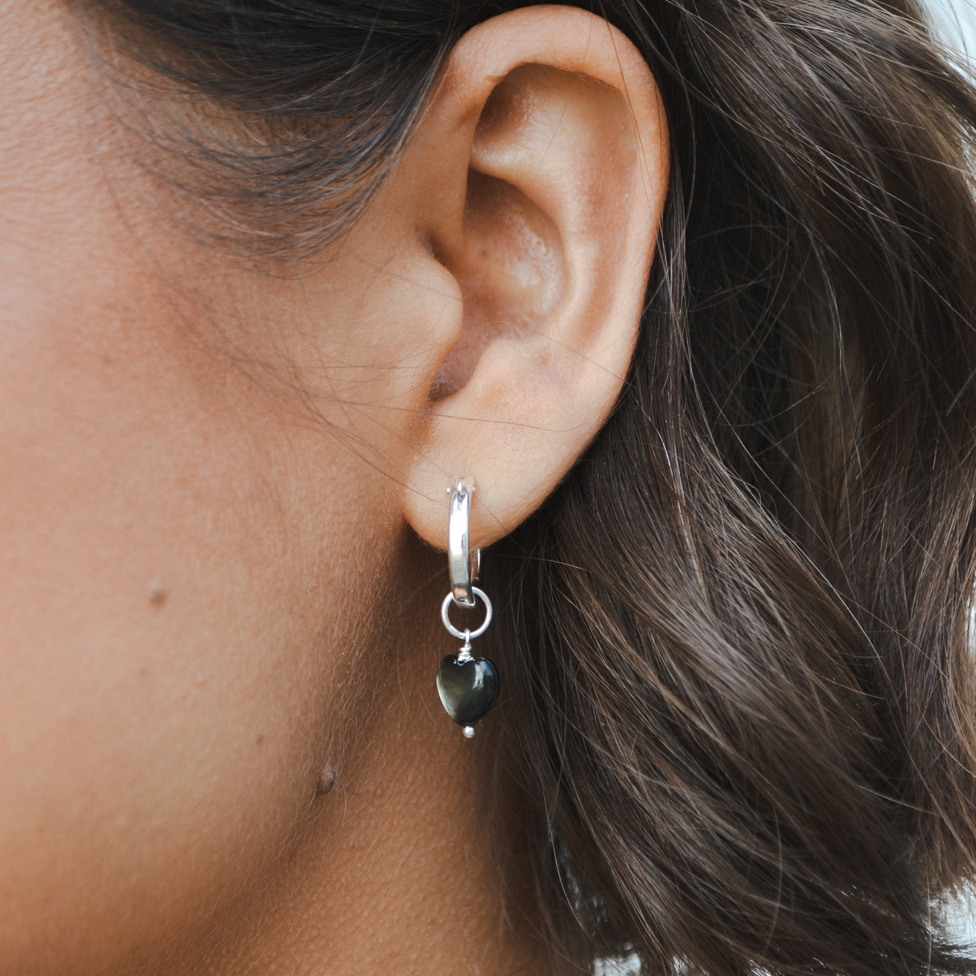 Part of our Customizable Collection - these earrings are truly versatile. With removable Drops you can wear these hoops alone or with their heart companion. Or for a completely different look take one of your drops and slip it on any of our basic chain necklaces.