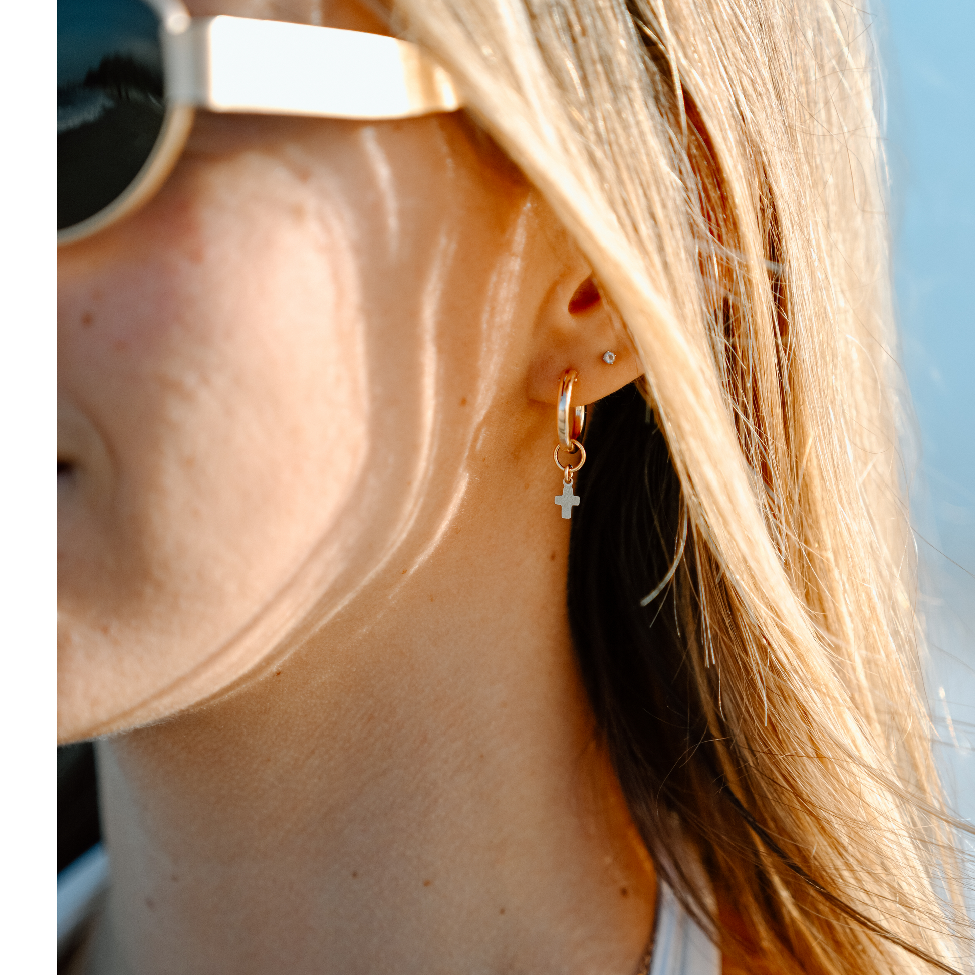 Versatile and dainty, this cross pendant can be threaded onto hoops or necklaces to accompany you on all lifes journeys!