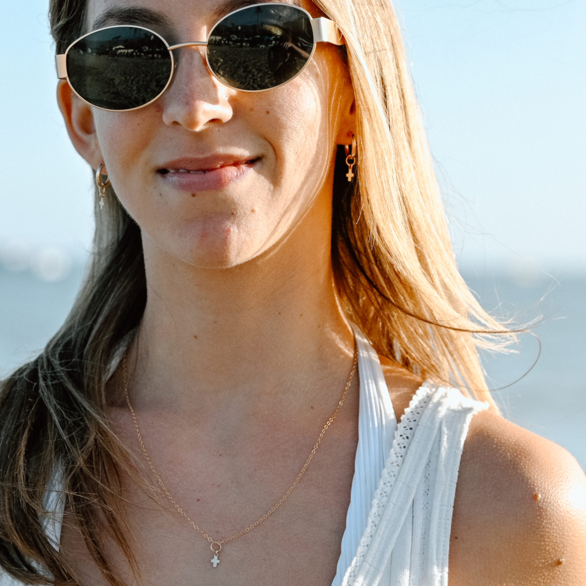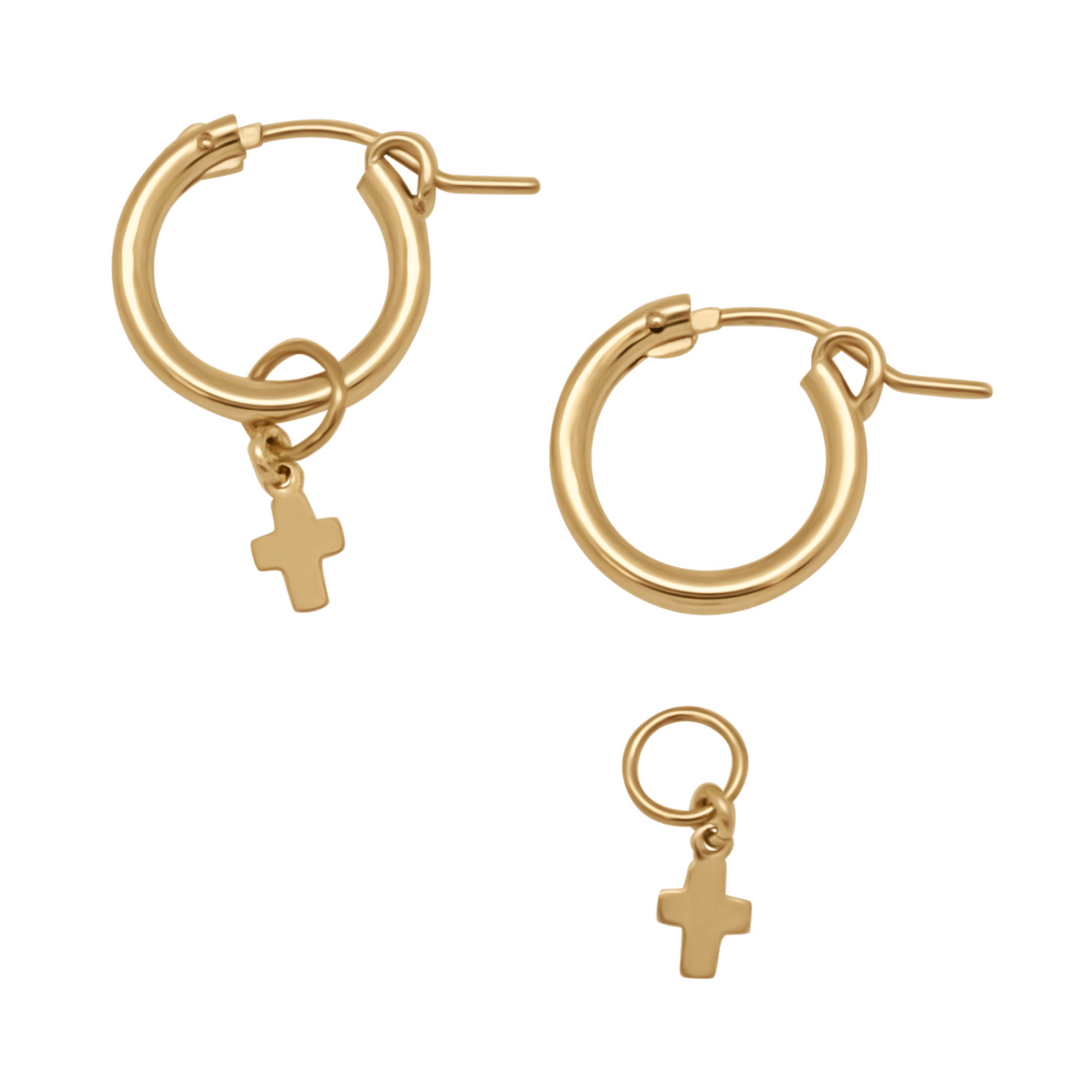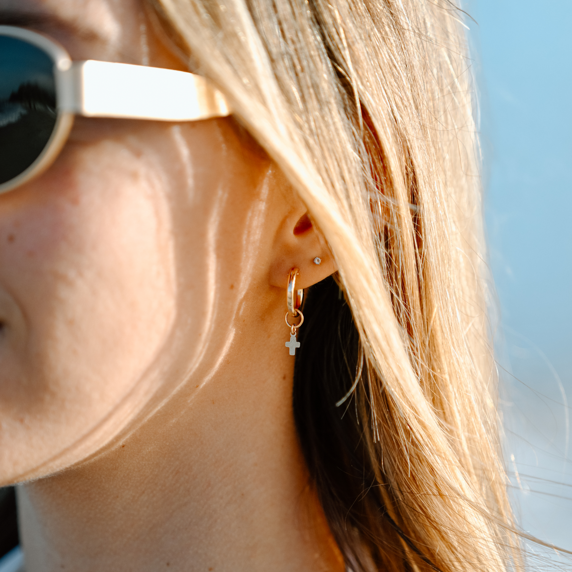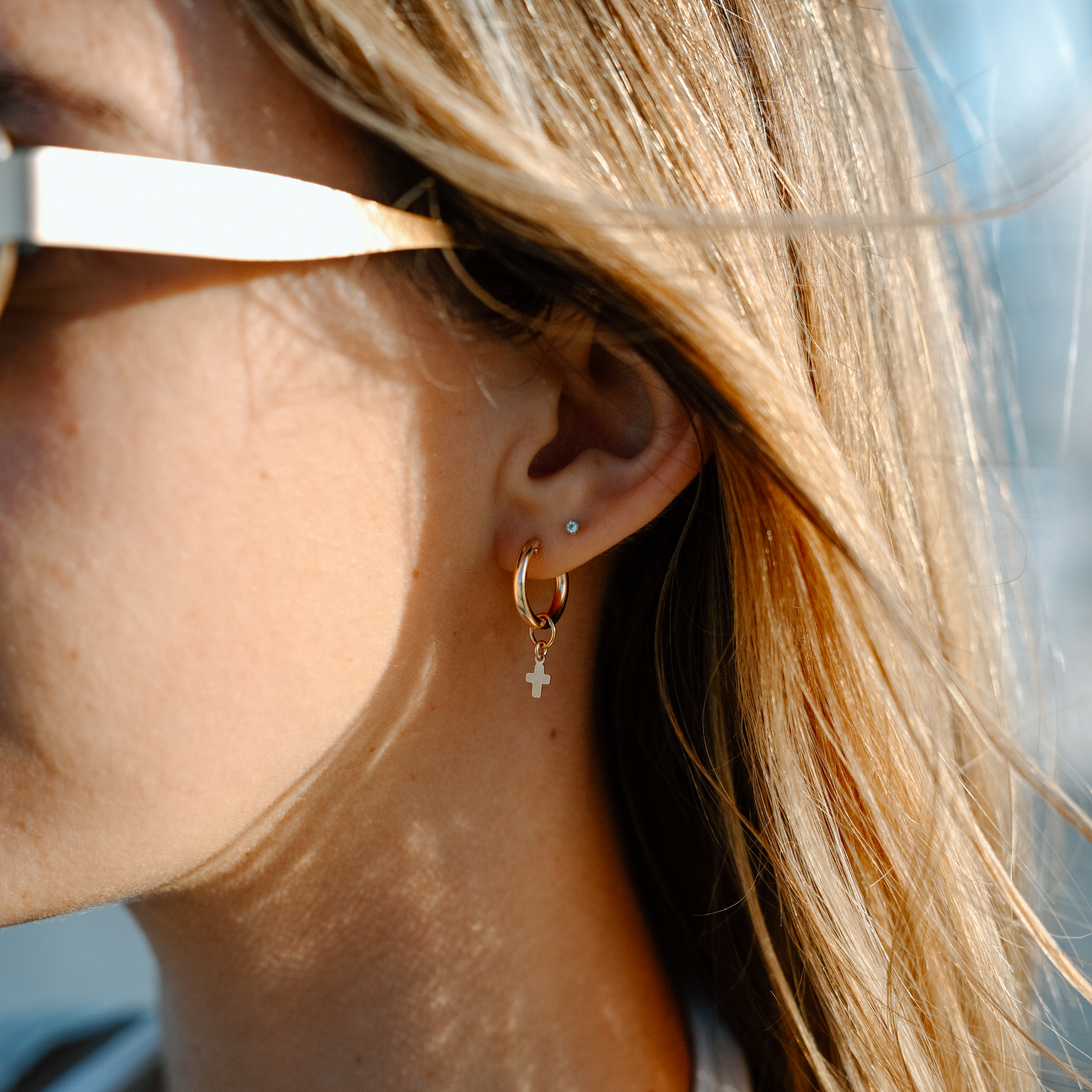 Includes a pair of Classic Hoops (Small) and two Mini Cross Drops.