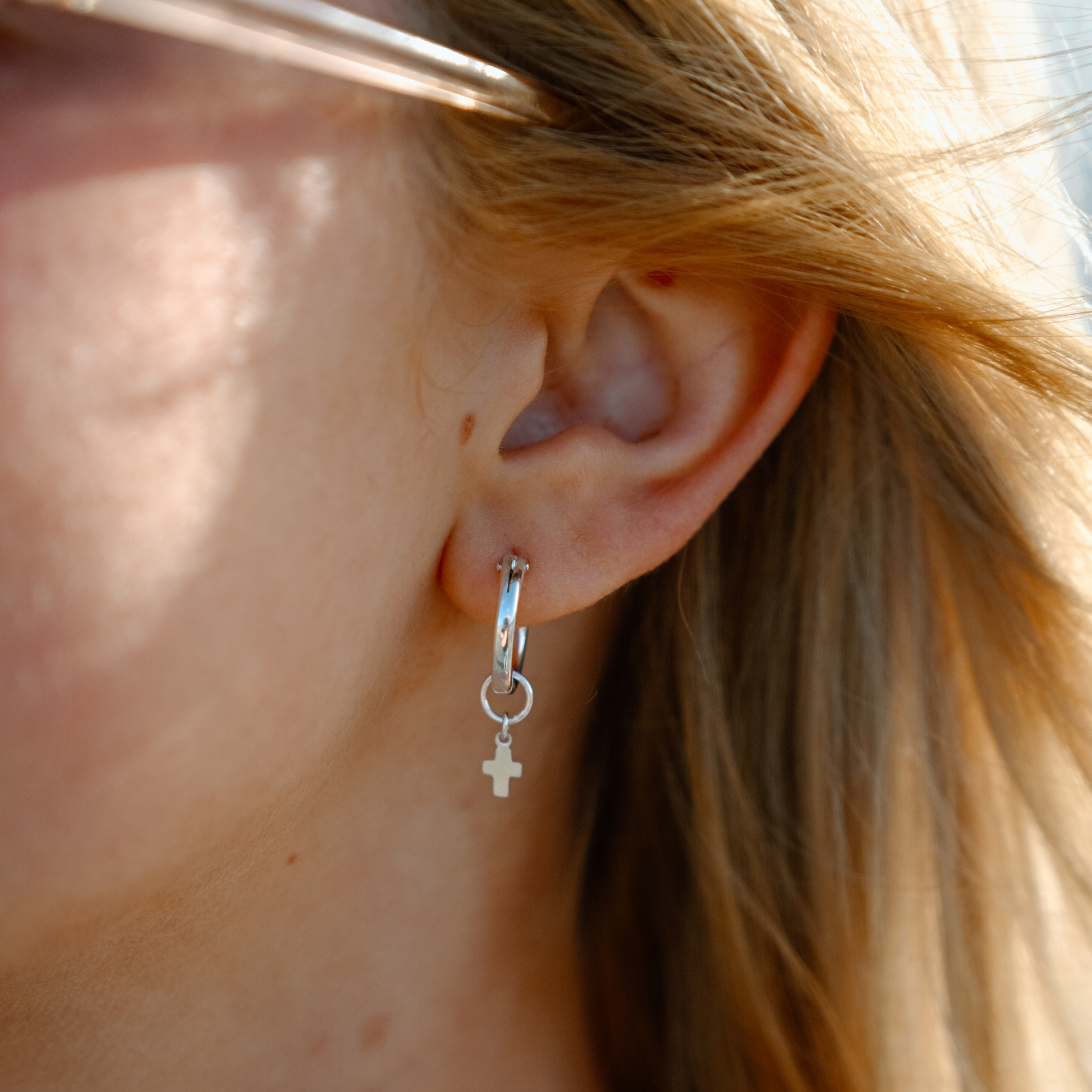 Includes a pair of Classic Hoops (Small) and two Mini Cross Drops.