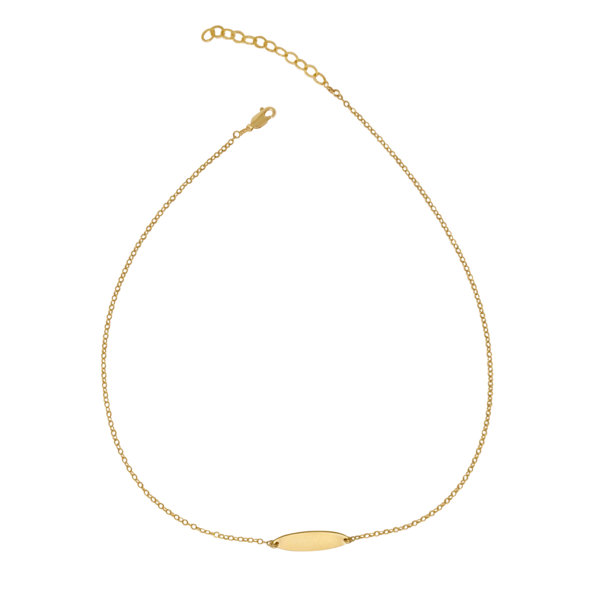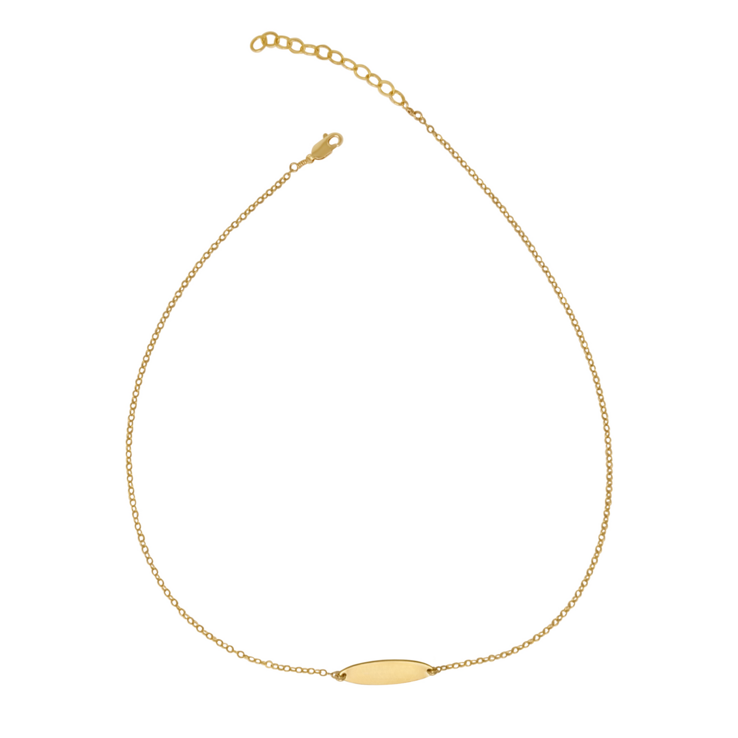 Dainty glimmer chain necklace with engravable oval ID bar.