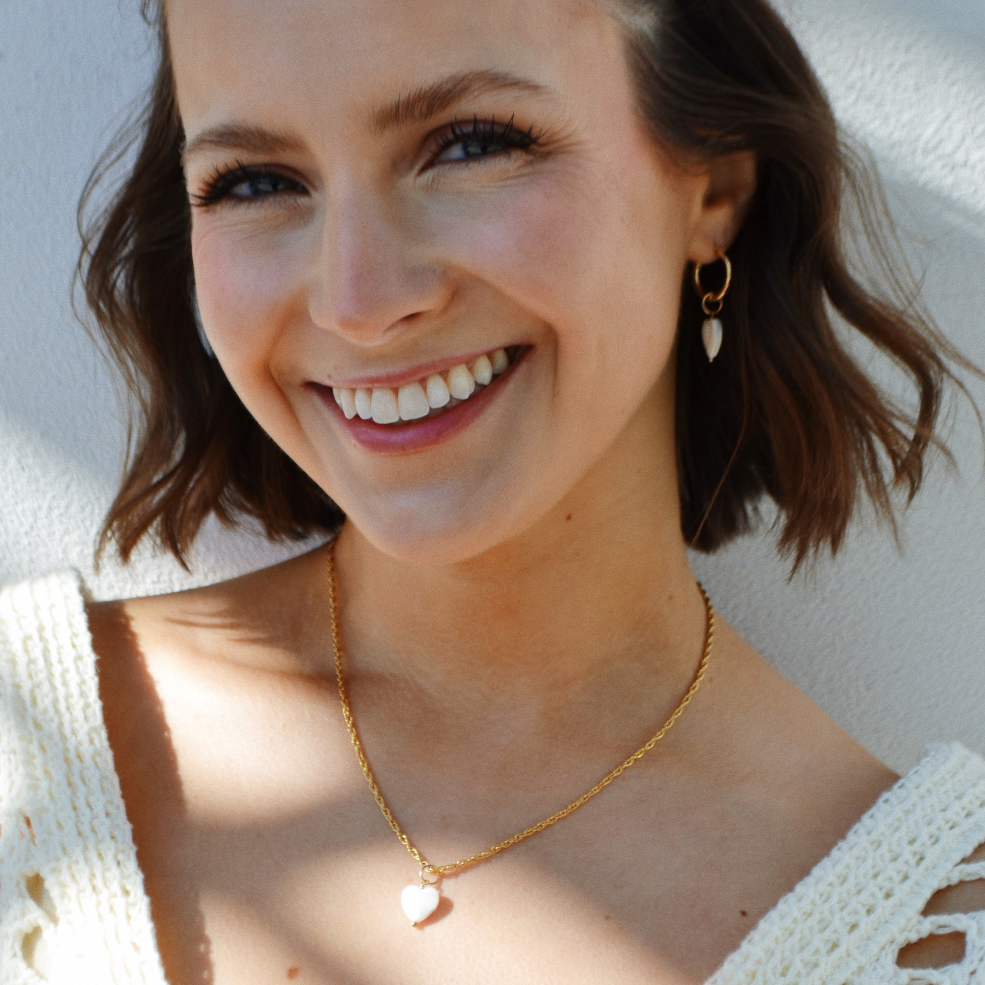 Almost iridescent, this Mother-of-Pearl pendant is chic, feminine, and luxurious. Wear from brunch with friends to a romantic night out -- this piece will never let you down!