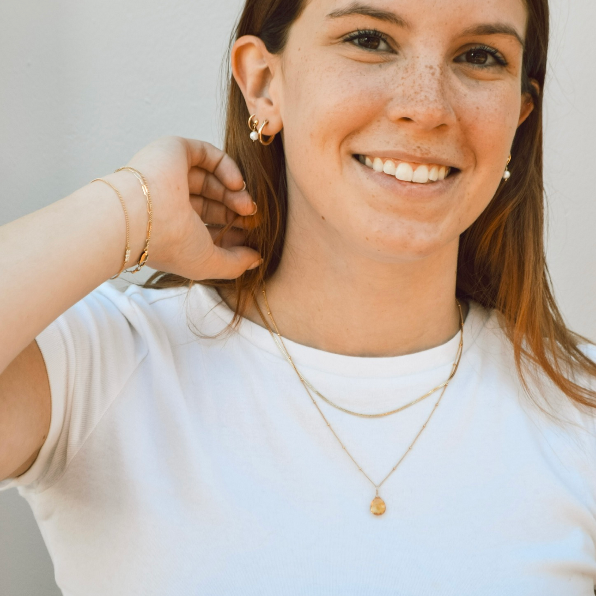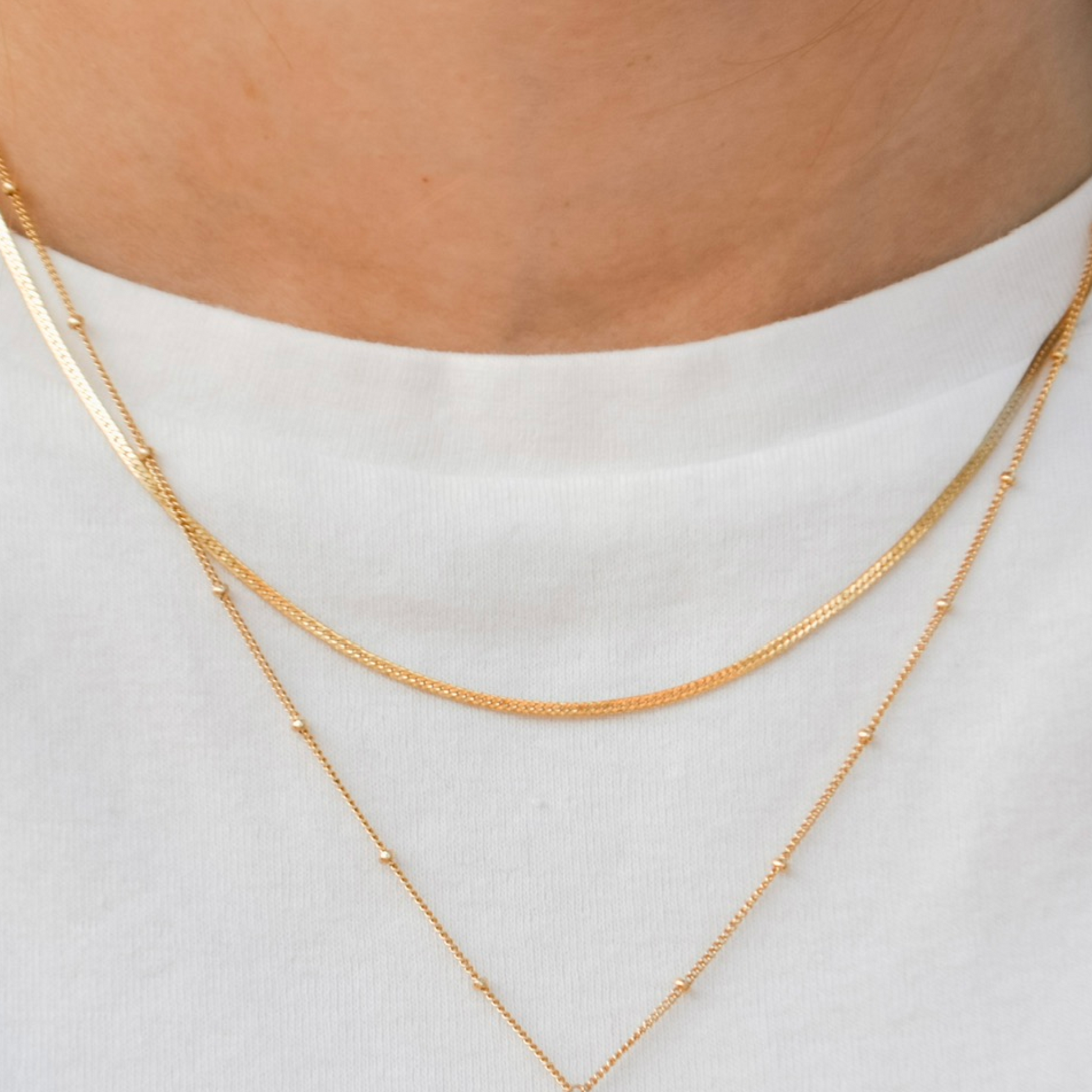 Like liquid gold, our newest herringbone chain is thinner for easy layering! Dainty and luxurious, this staple necklace will elevate any look, effortlessly.