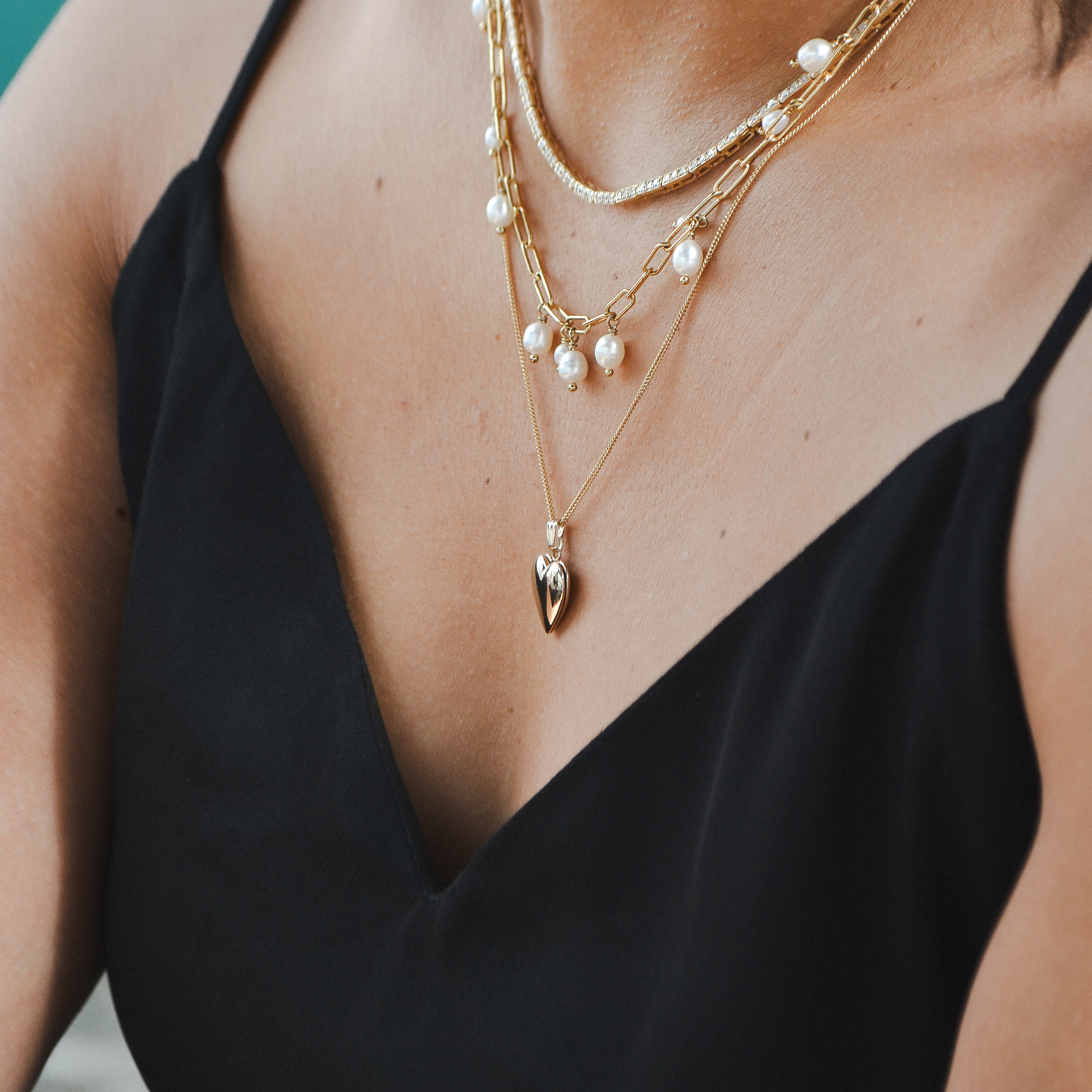 Gold-filled jewelry is an economical alternative to solid-gold jewelry. Gold-filled jewelry wears, looks, and lasts like solid-gold because the outer surface is solid-gold. It can be worn daily without fear of tarnishing, is hypoallergenic, and lasts for years.
