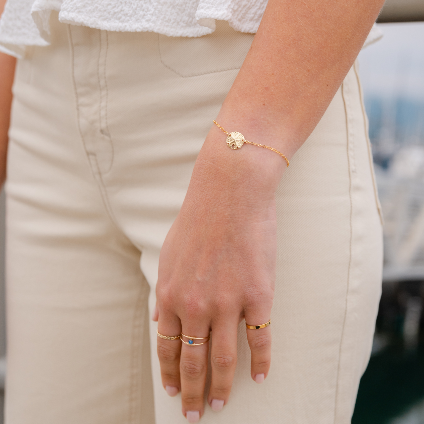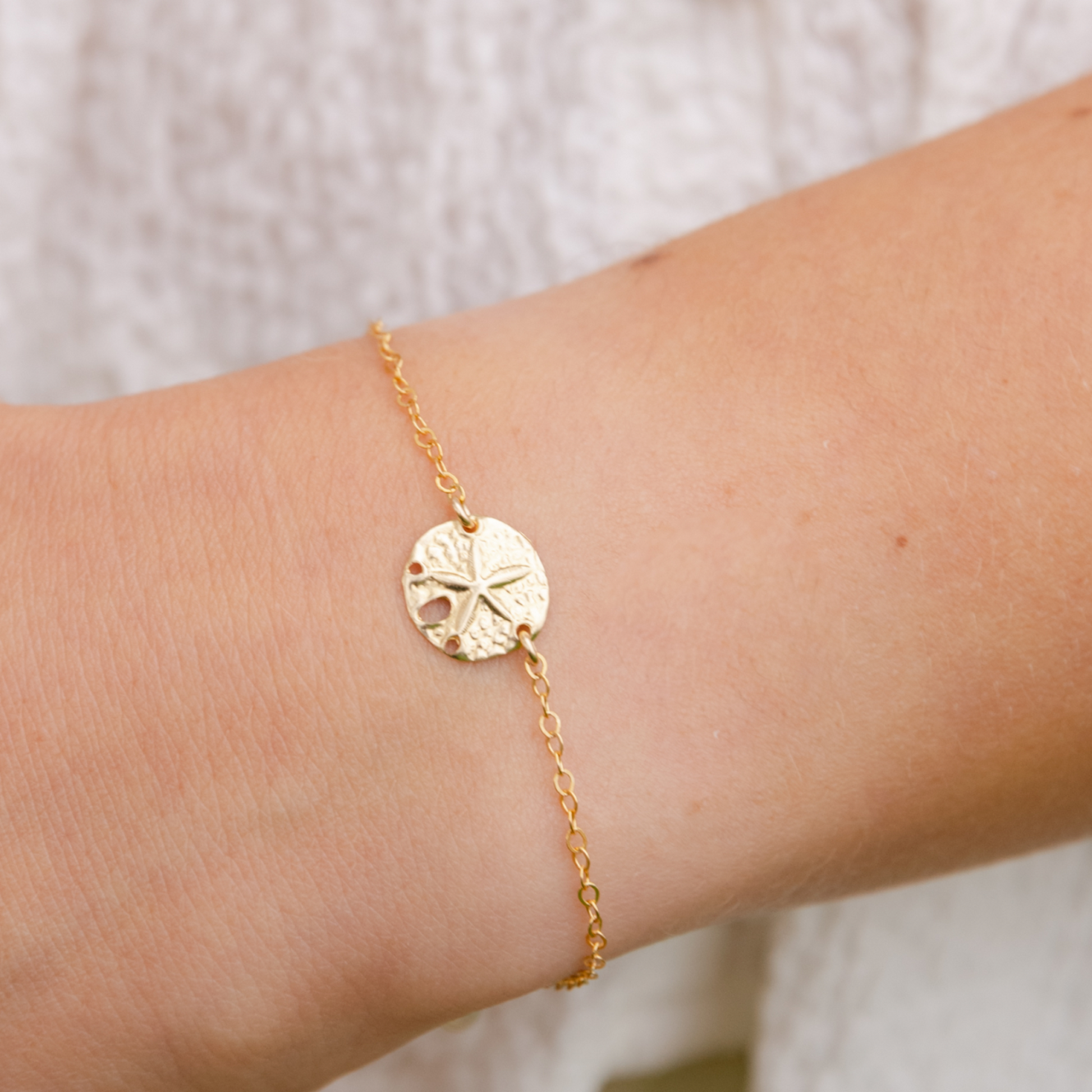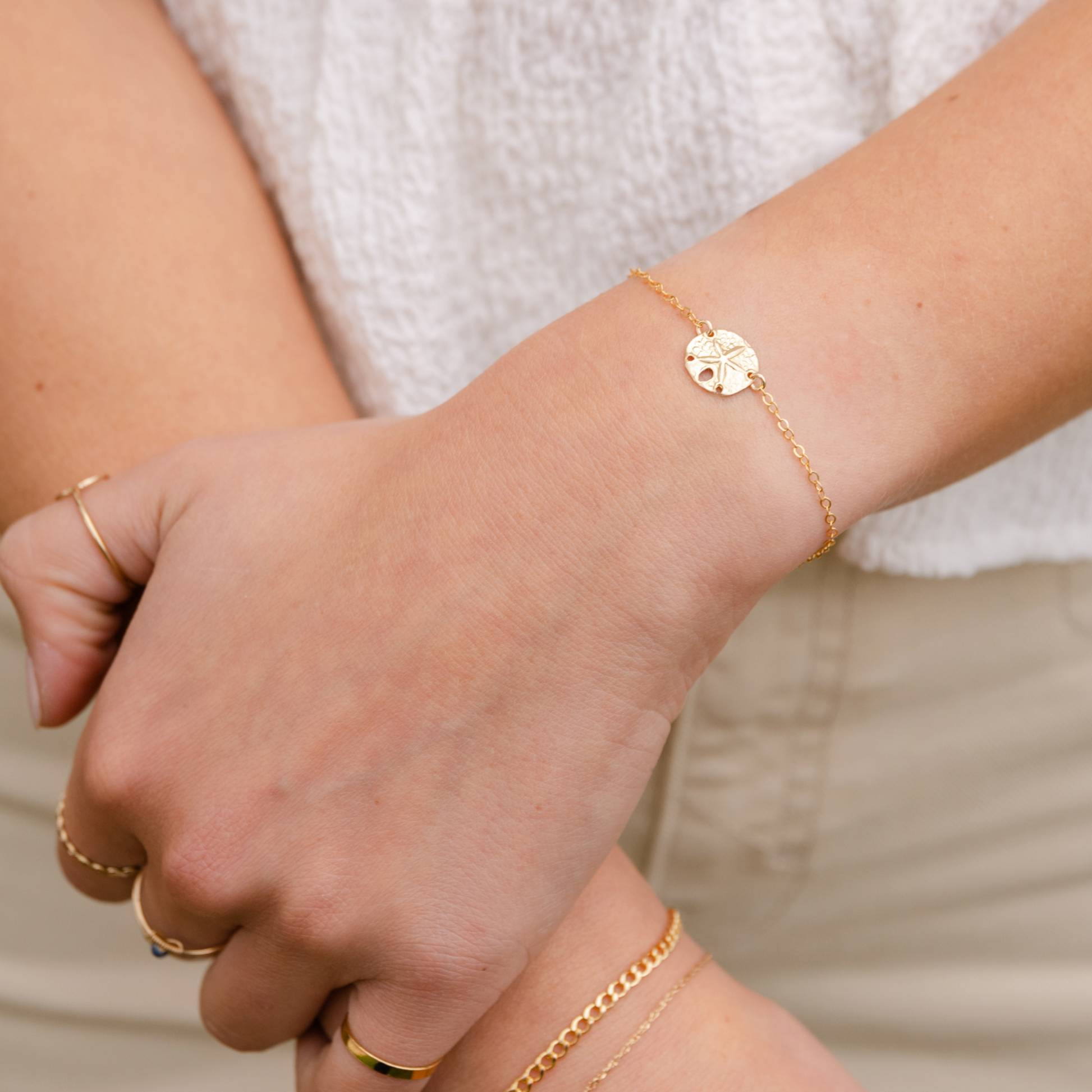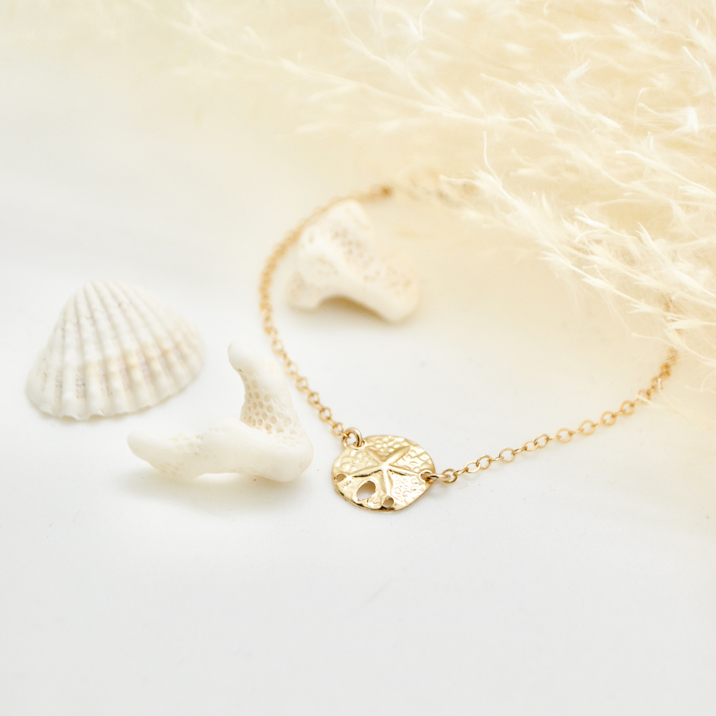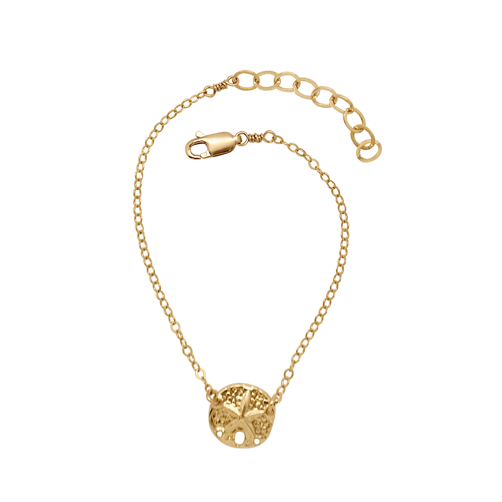 14k gold-filled glimmer chain bracelet with sand dollar charm.