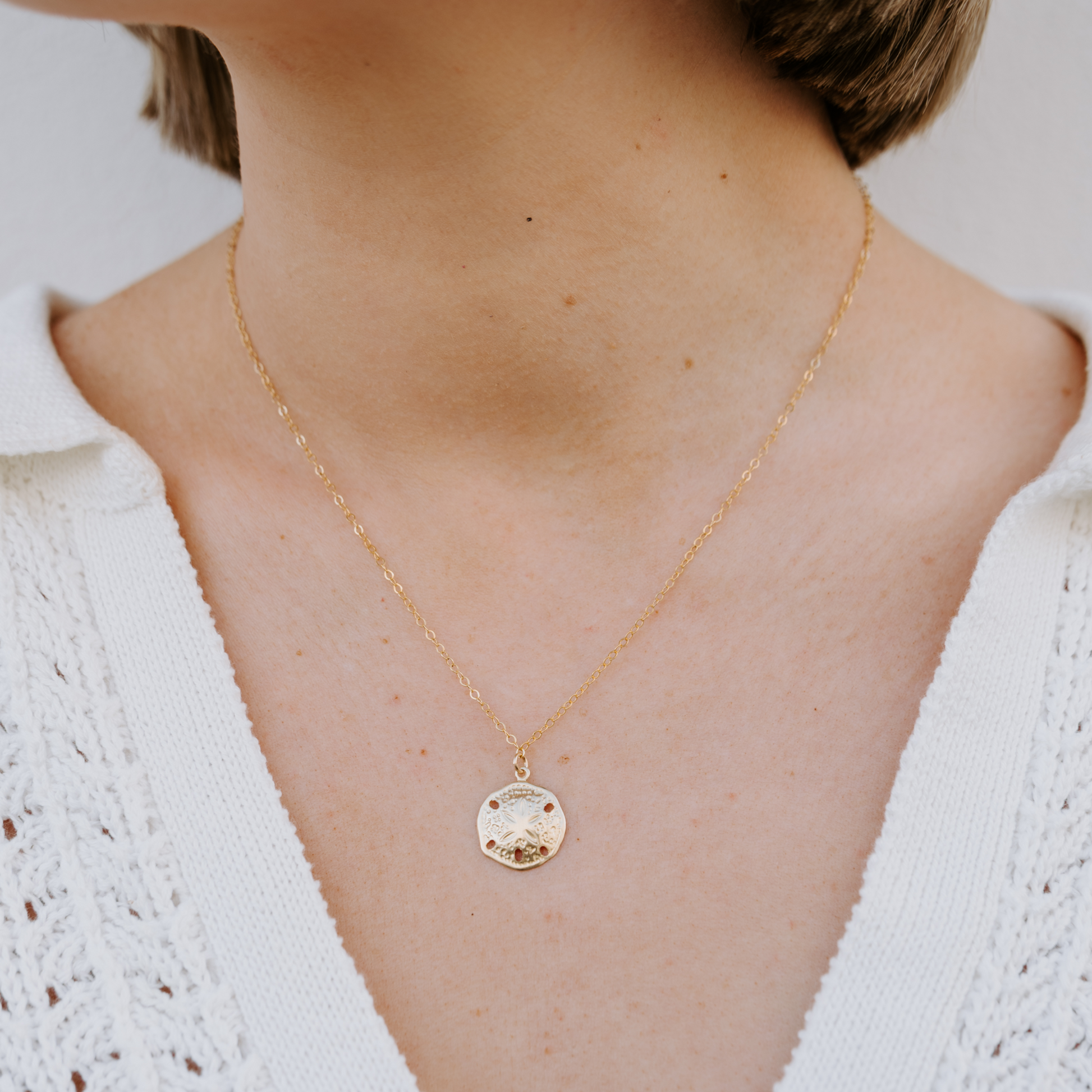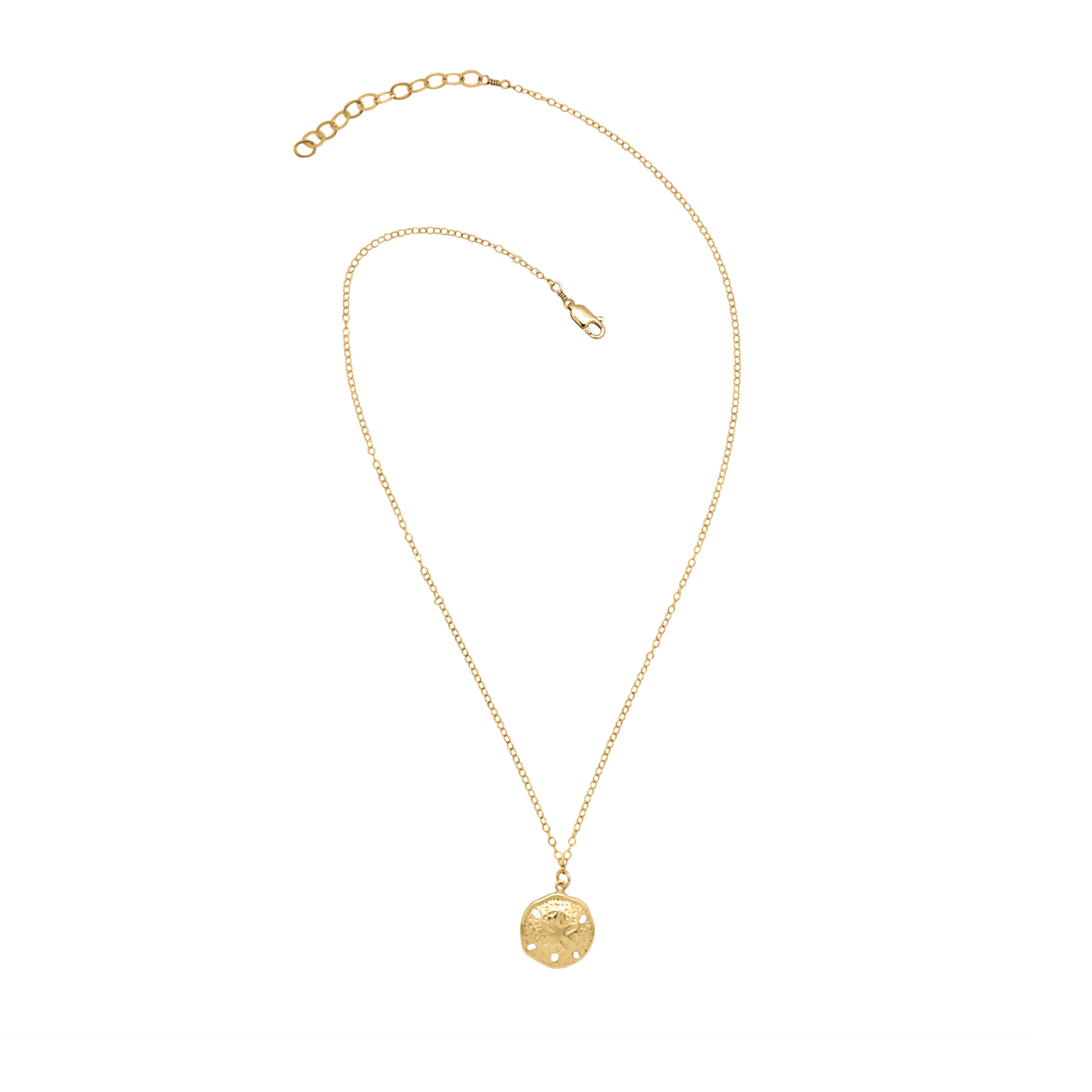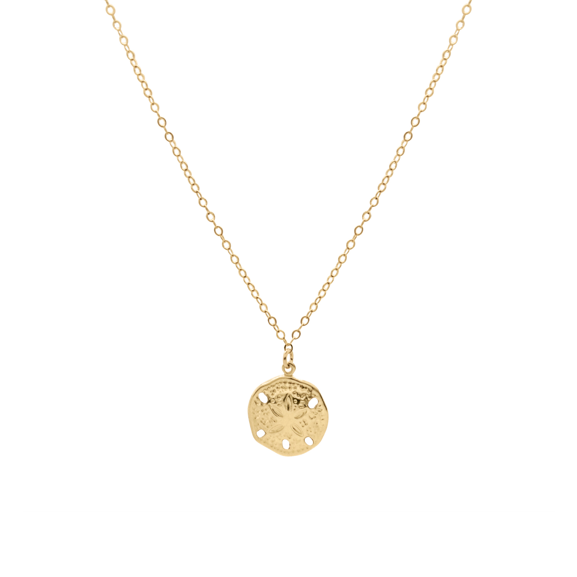 14k gold-filled glimmer chain with sand dollar pendant.