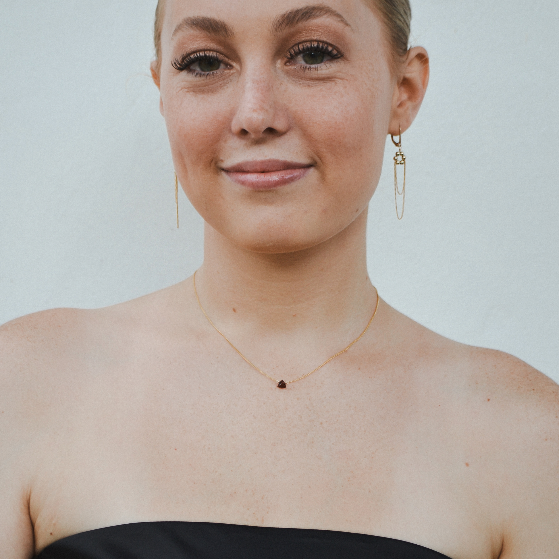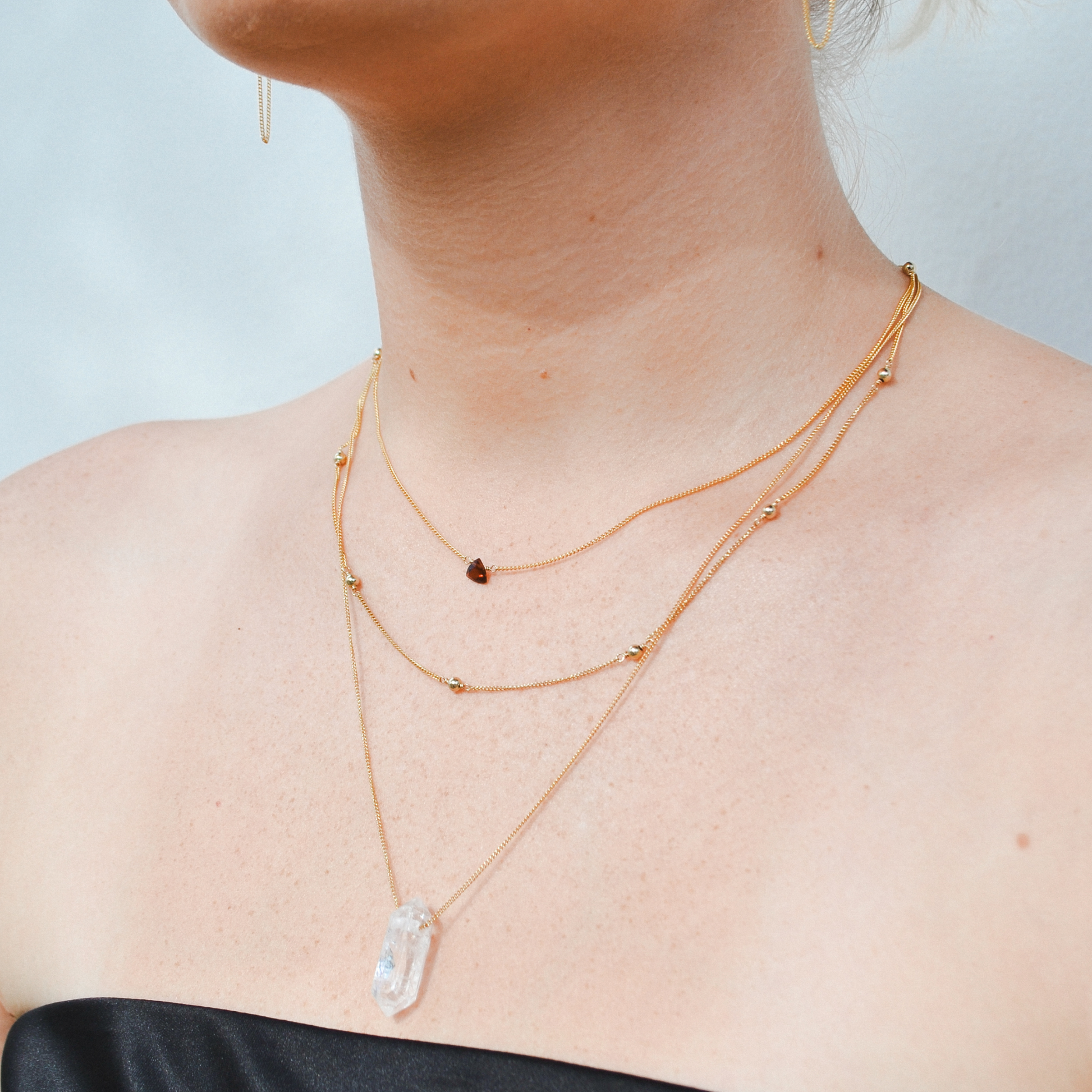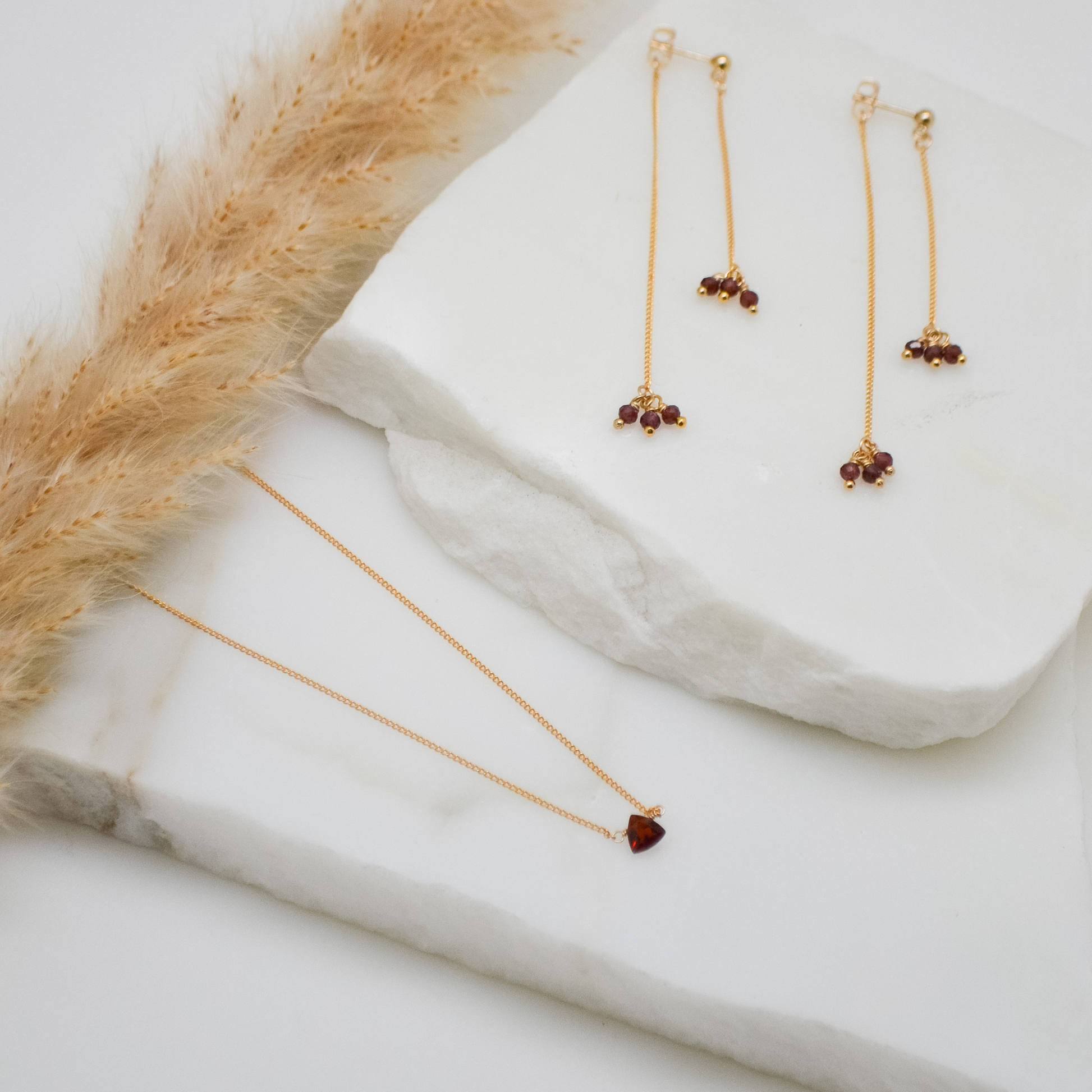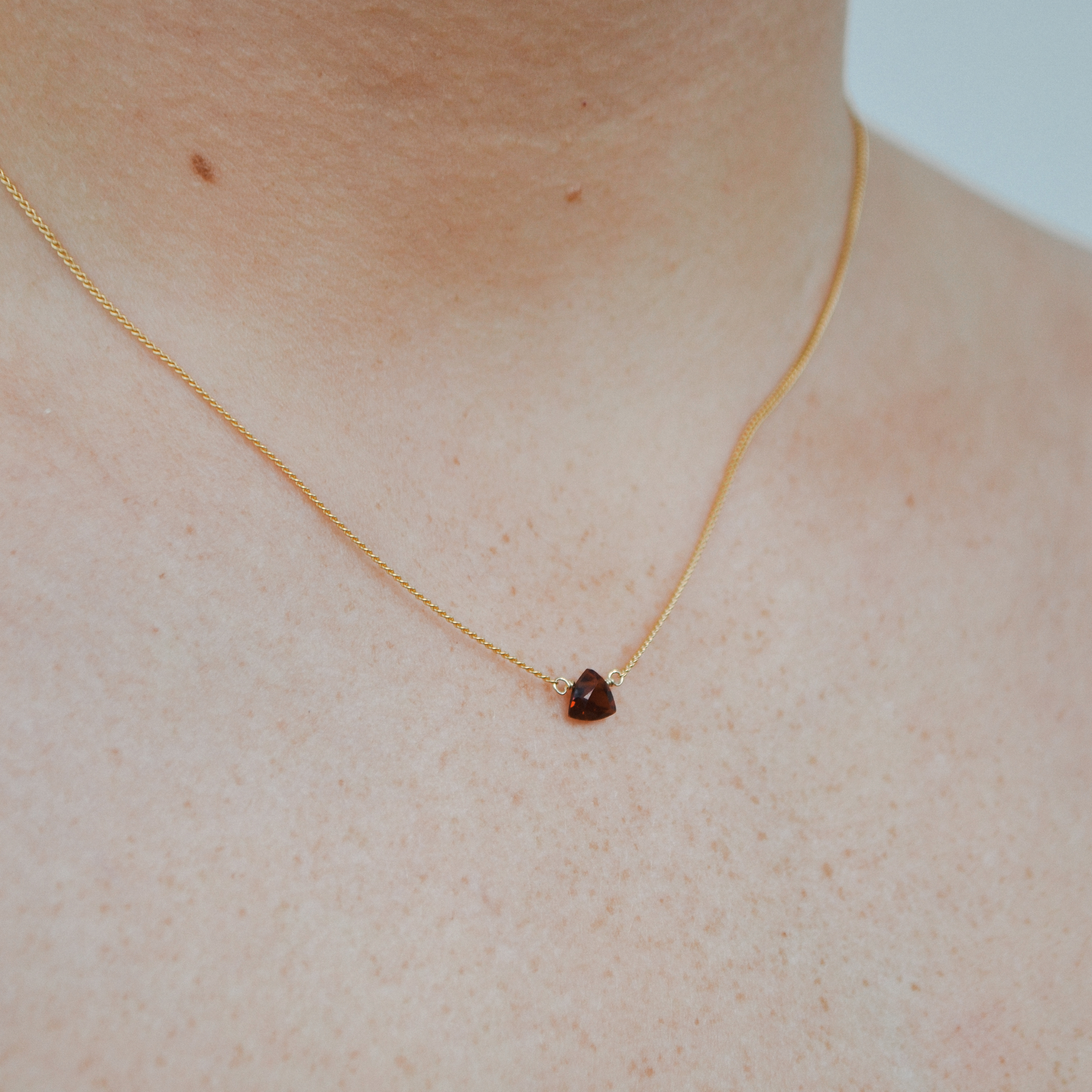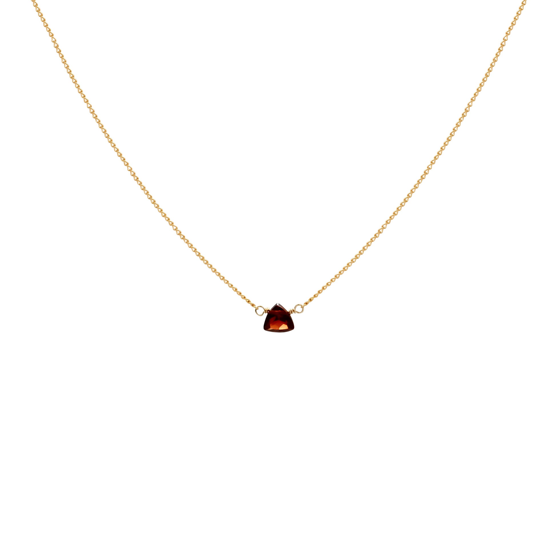 Bold yet understated, the Scarlet Necklace adds a touch of fiery elegance to any look—its delicate garnet triangle will have you feeling subtly powerful, perfect for those who appreciate minimalism with a hint of drama.