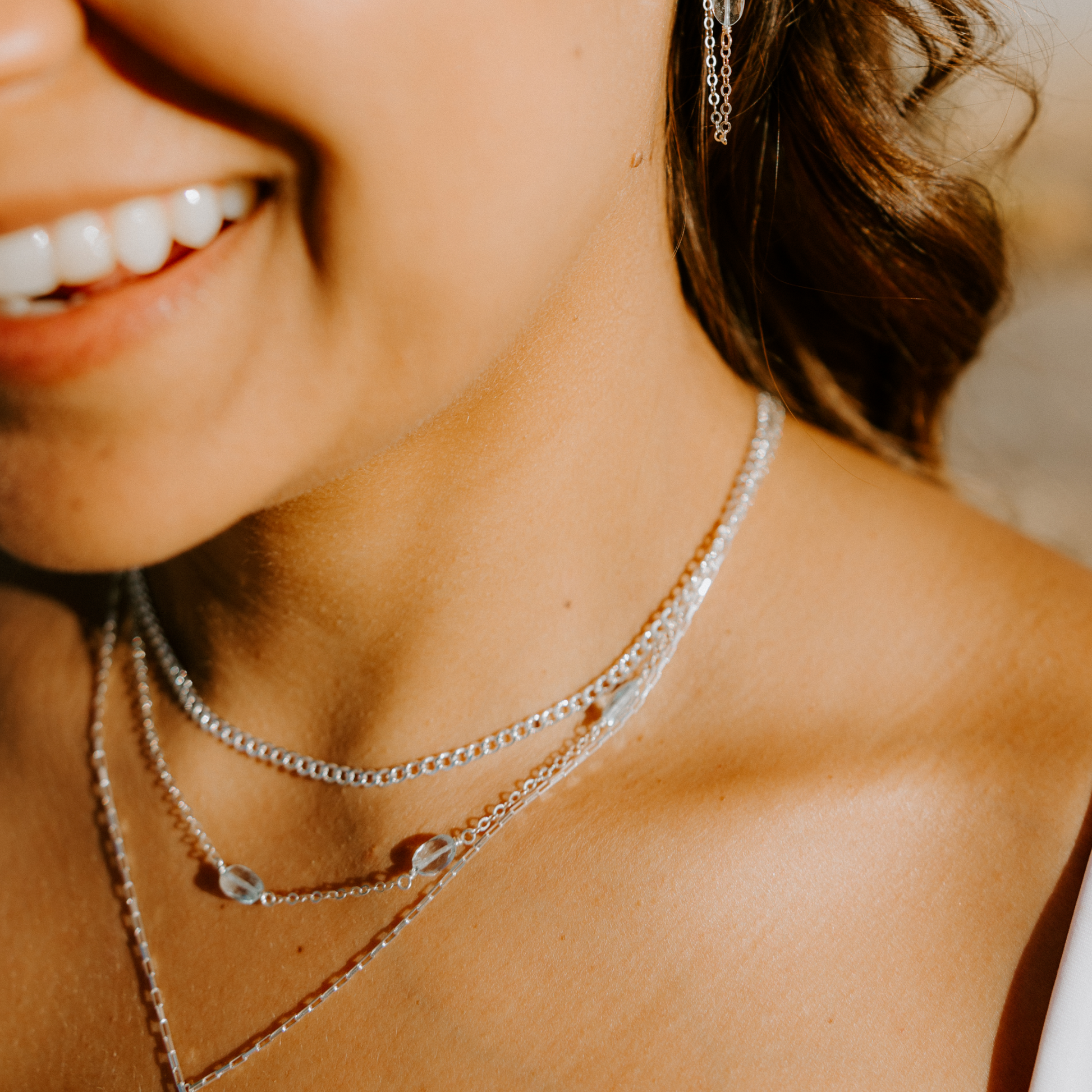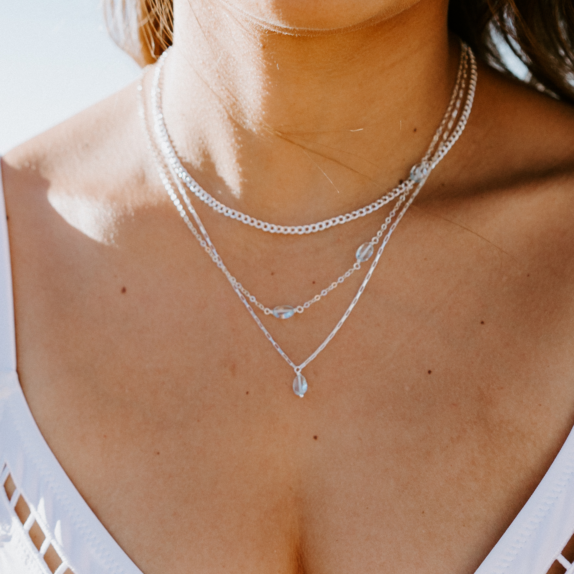 Our beloved serenity necklace, now available in silver with sparkling blue topaz! An Anna Janelle Jewelry best-seller, this necklace is an instant favorite. Wear it alone or layer it with other pieces -- you can't go wrong!