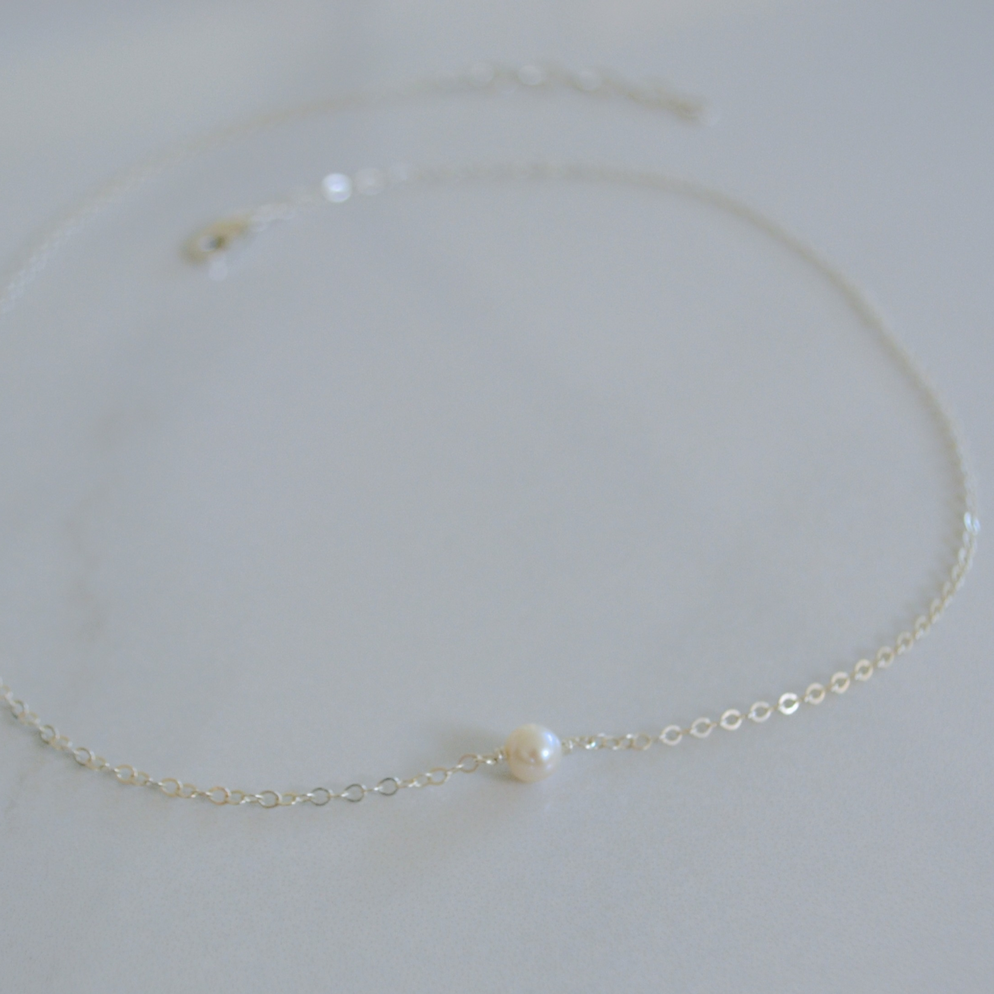 Our simp necklace, now in sterling silver! The white pearl on this piece is only highlighted by the bright and shining sterling silver chain. Feminine and dainty, this necklace will accentuate your natural beauty.