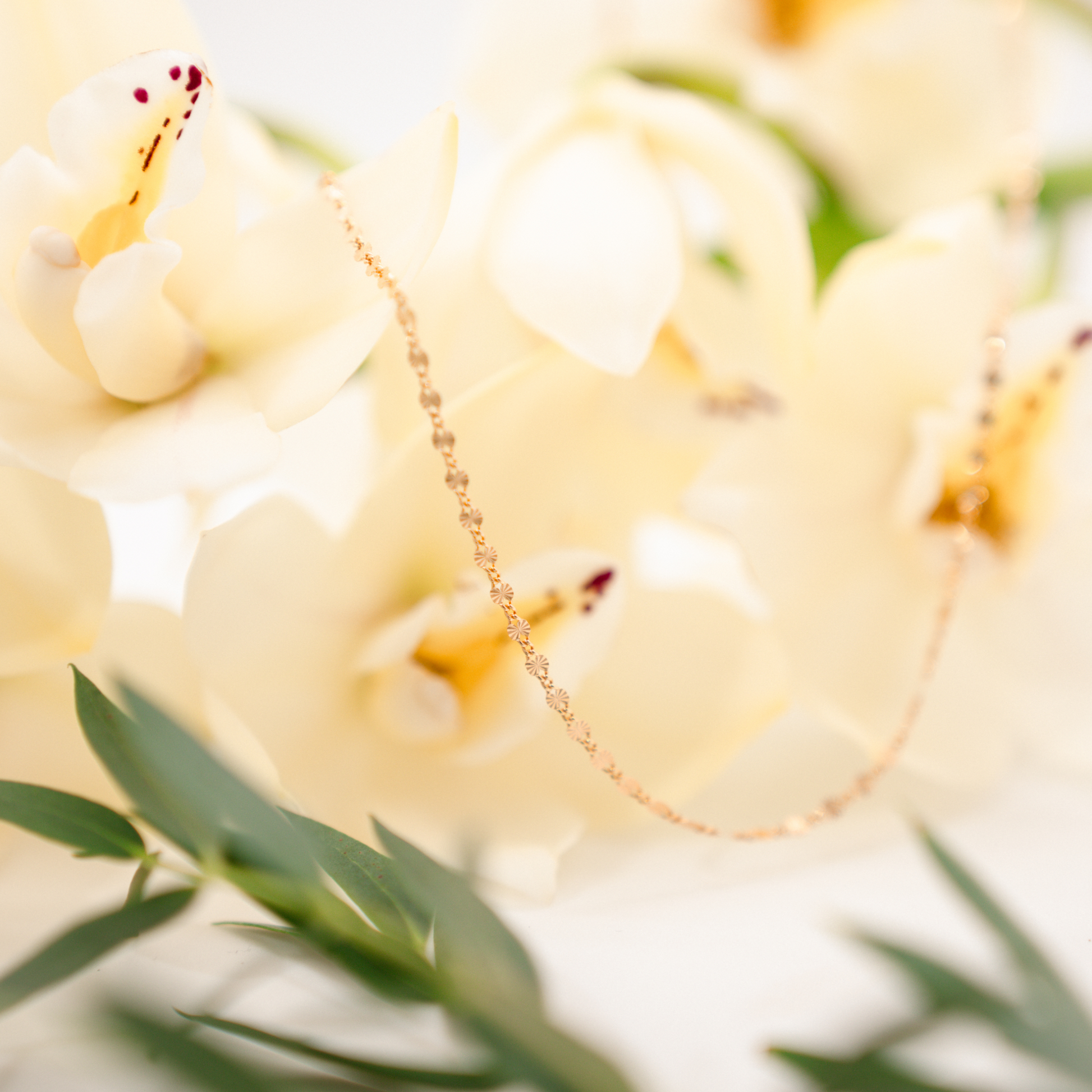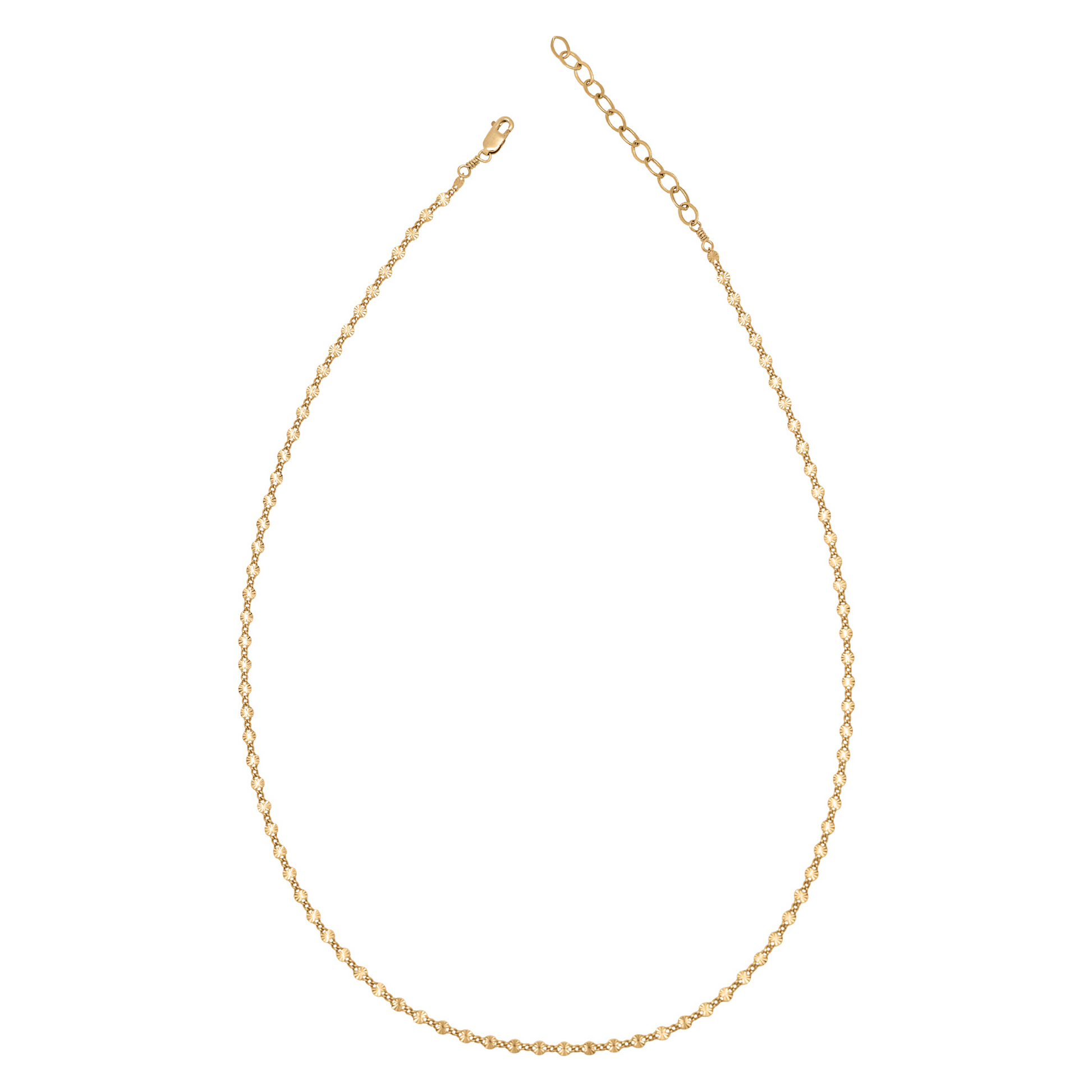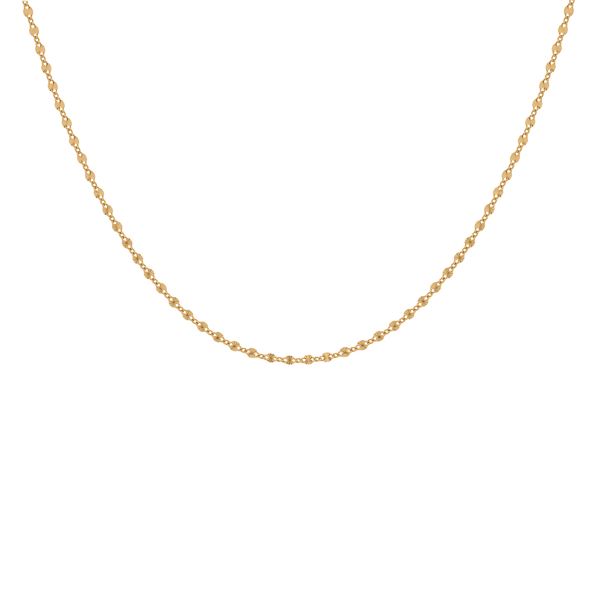 Textured to reflect maximum light, the gold discs connecting this gorgeous new chain will have you shimmering.