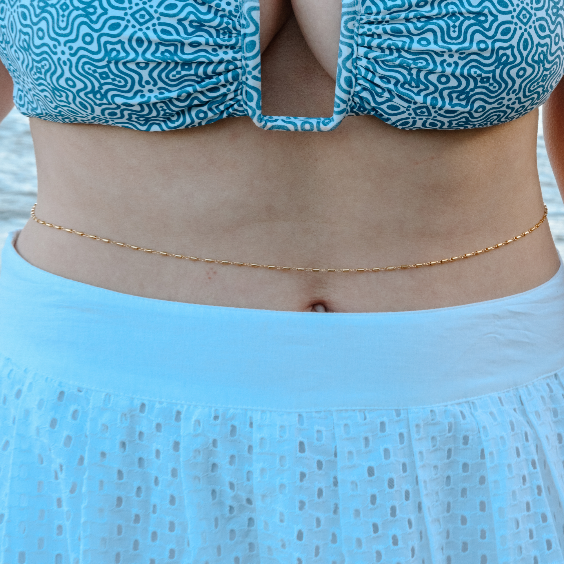 The perfect summer accessory, elevate your warm-weather outfits with this iconic waist chain. Featuring a gold tube chain, this piece shines bright like you! This versatile piece can also be worn as a necklace.
