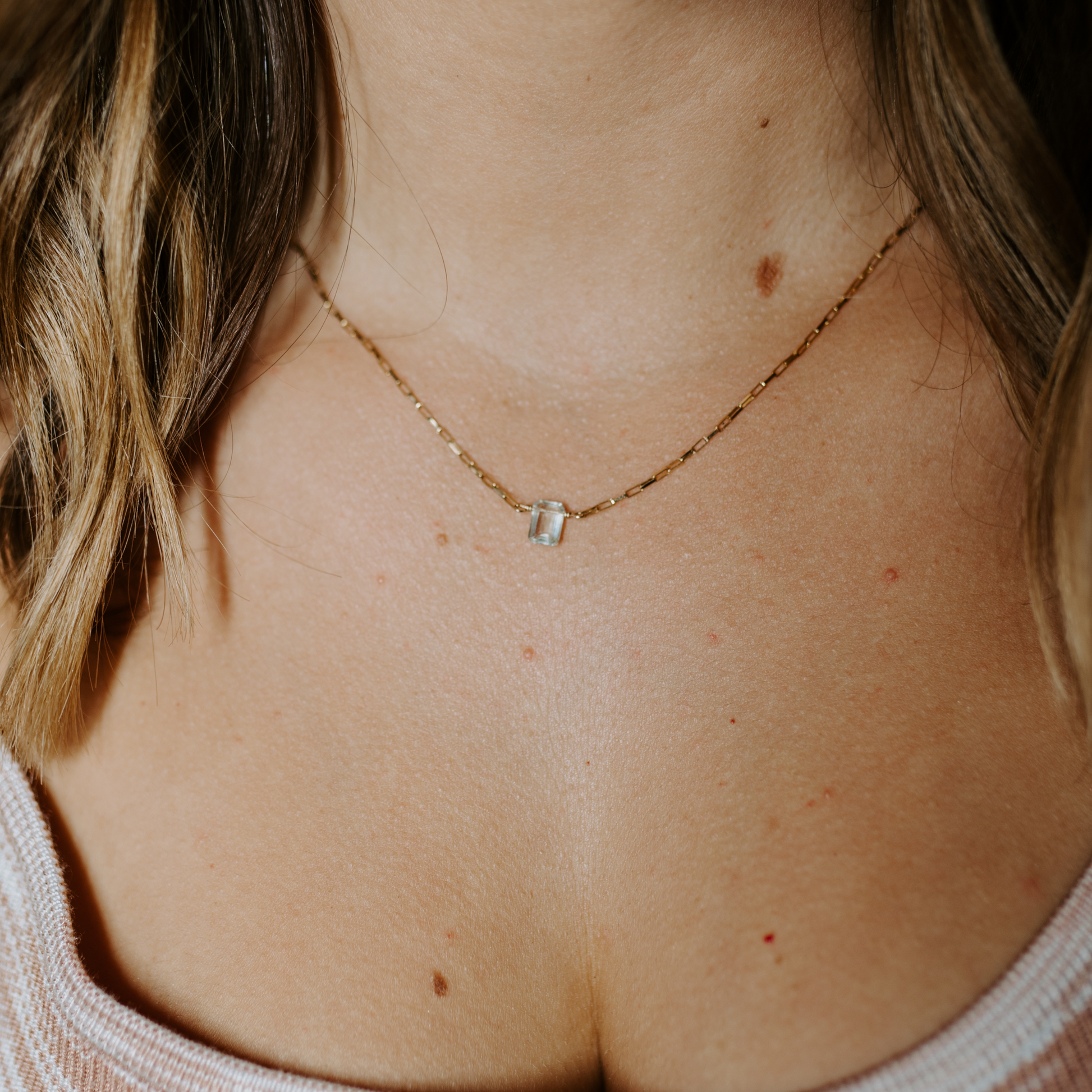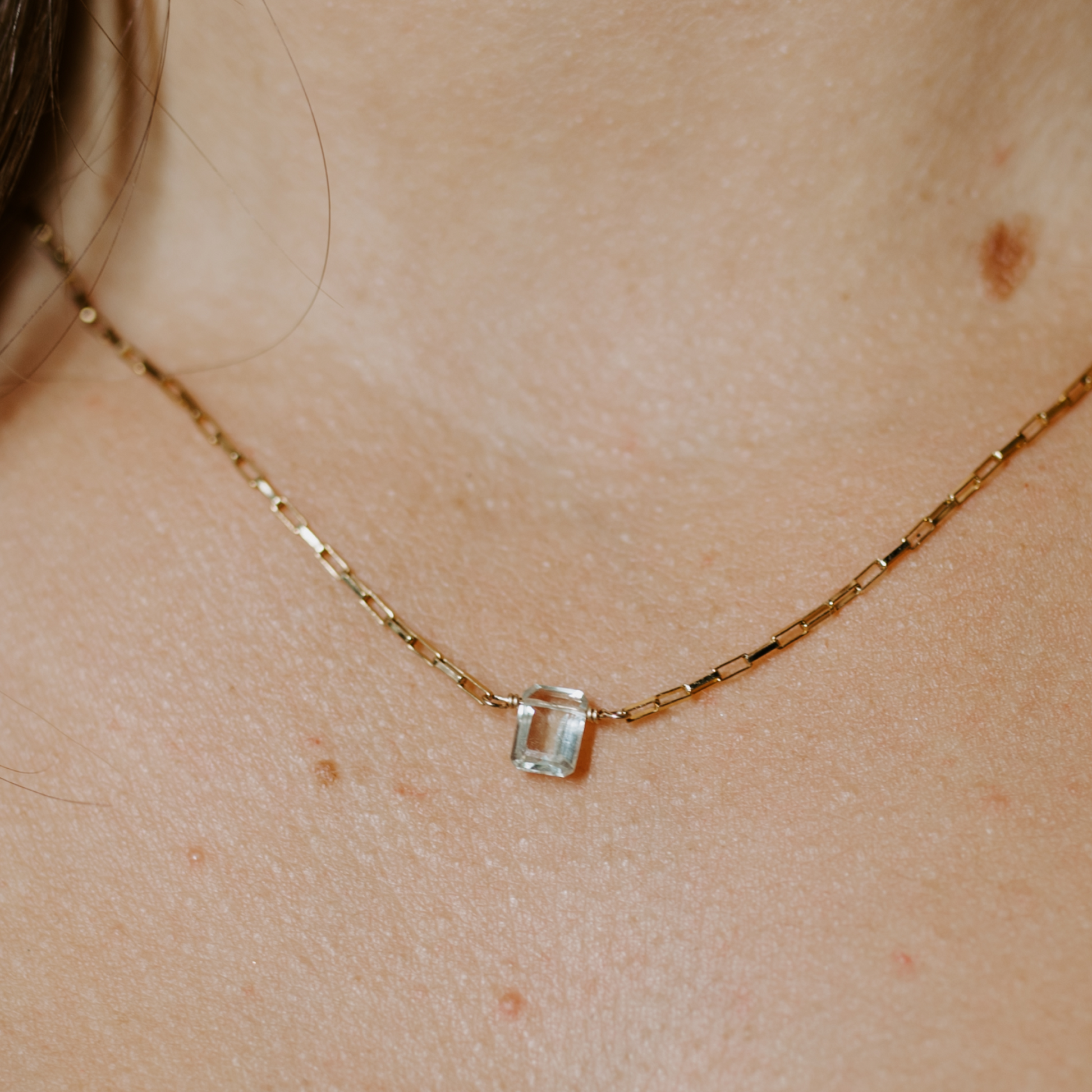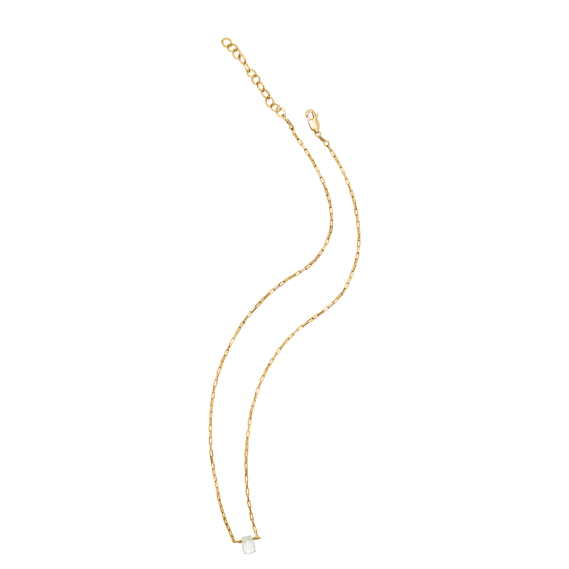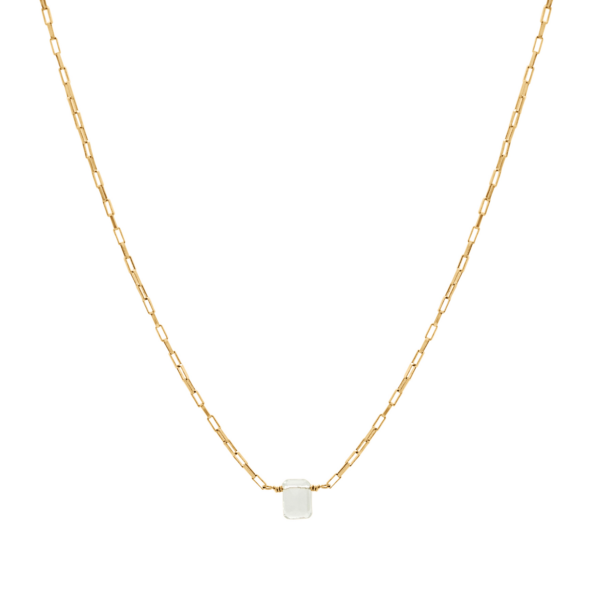 Dainty Venetian box chain necklace with a rectangular green amethyst.