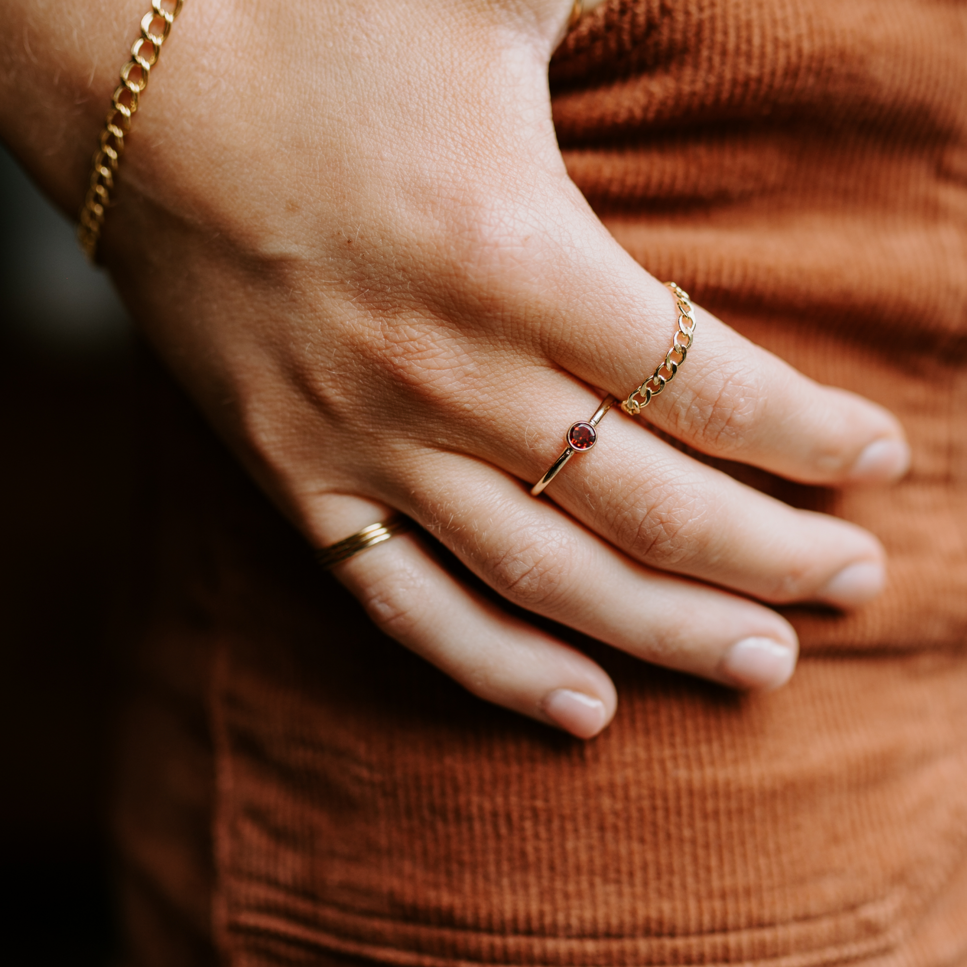 The perfect ring for any finger. A classic shape and perfect size with a shining Garnet. You will love wearing this ring for years to come!
