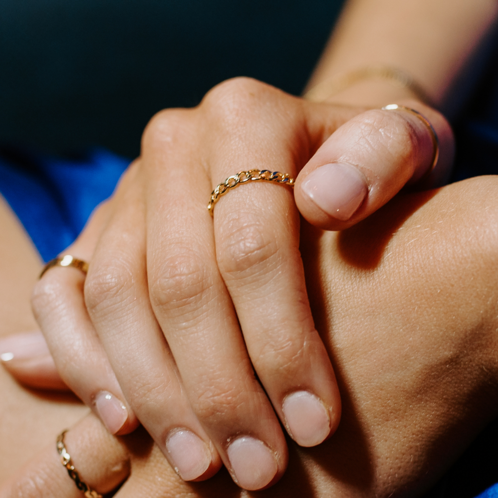 Introducing our second chain ring, now in a thicker curb chain. Beautiful as a stand-alone piece yet also pairable with other styles, this ring can do it all! Perfect for any look, this ring will never let you down.