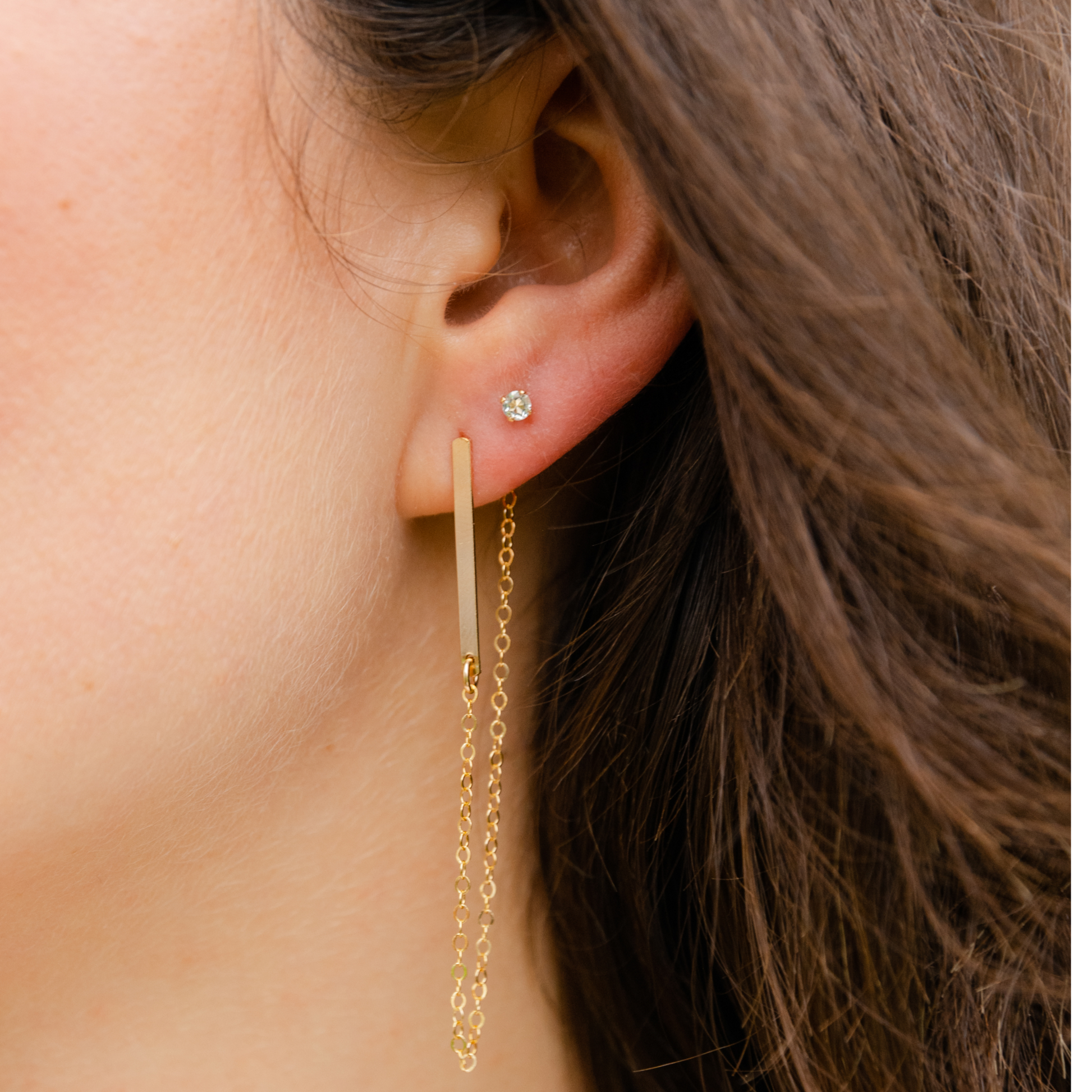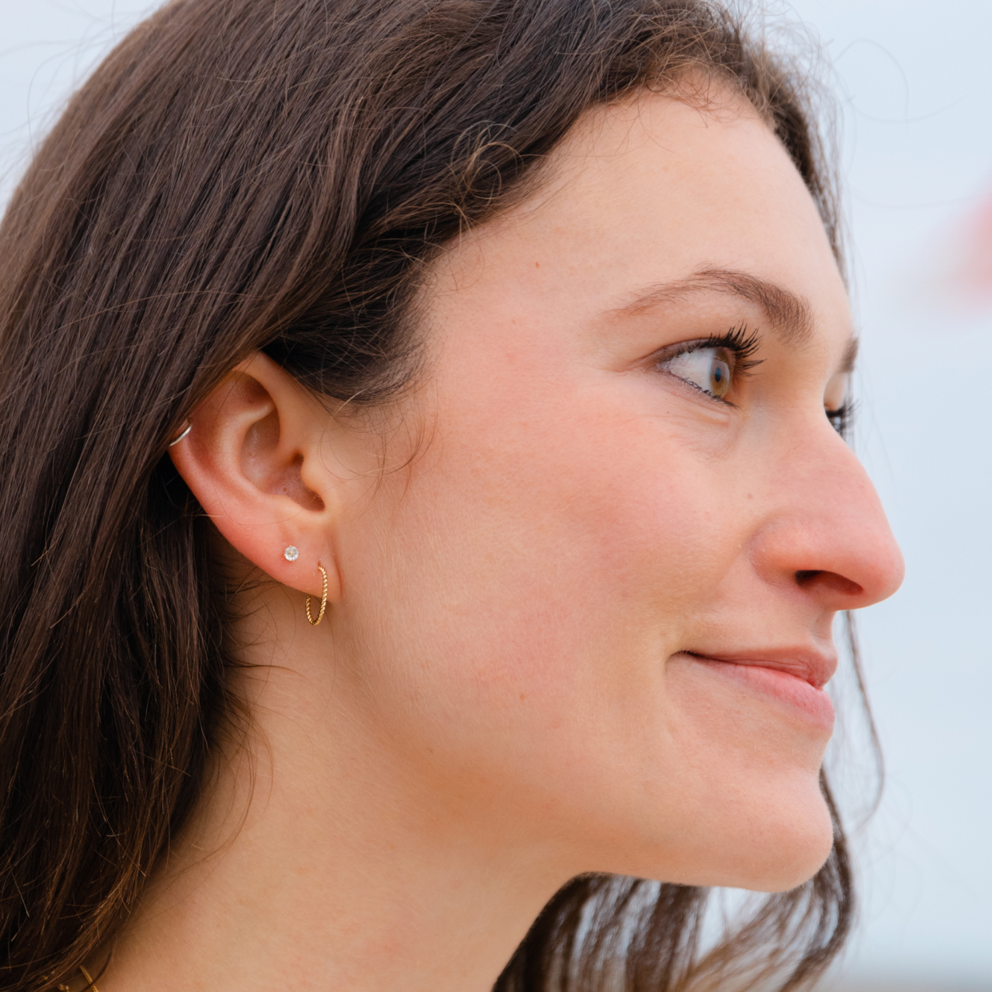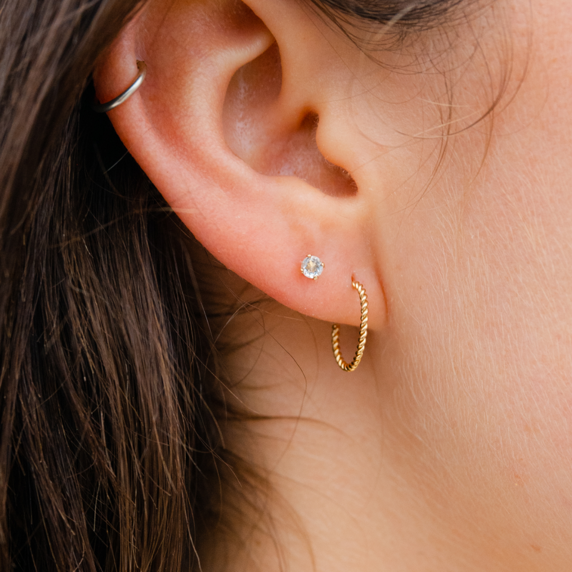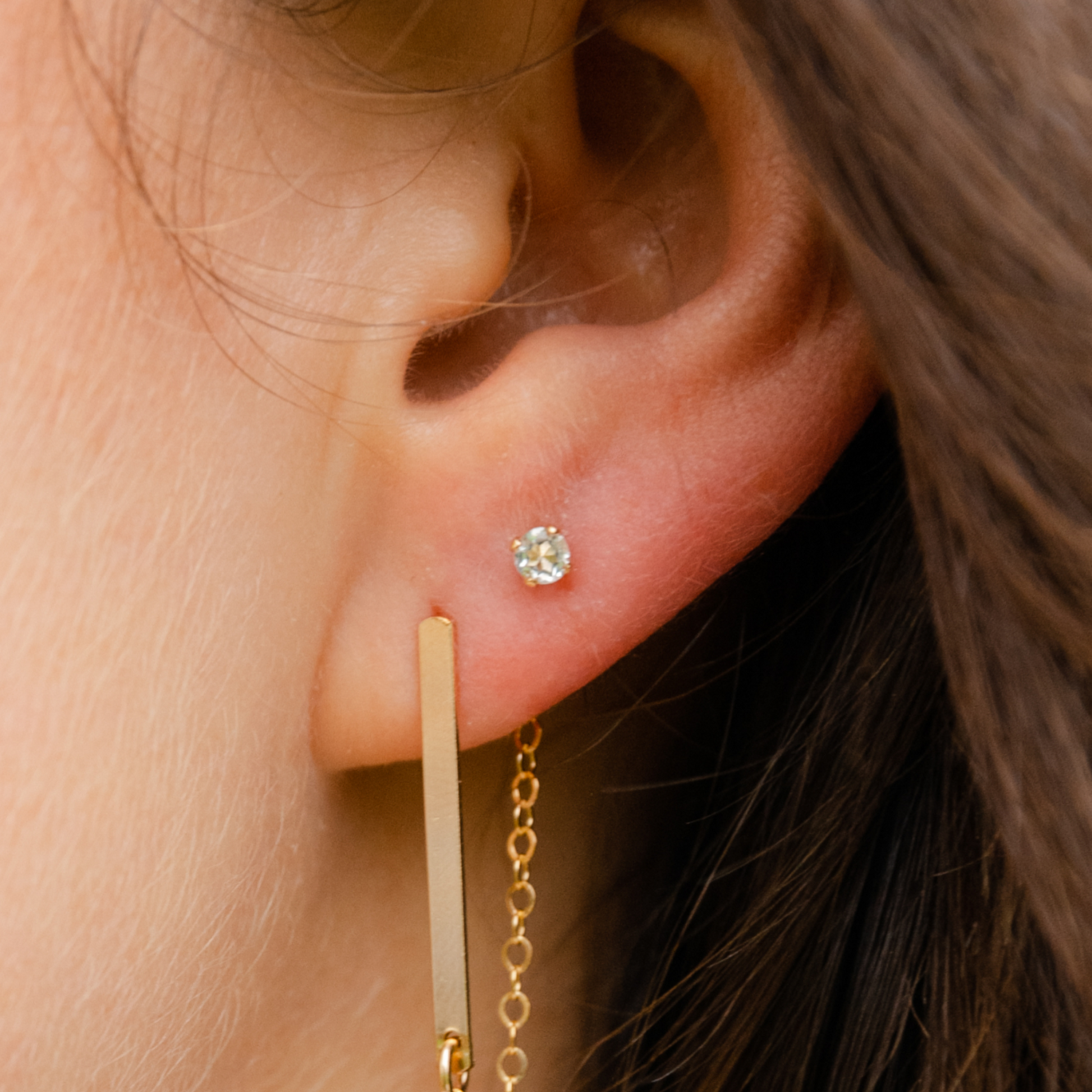 A must-have in any jewelry box. These pale green amethyst (almost clear with a subtle tint of green) stones SPARKLE! A simple look worn alone, or load your ear up if you have multiple piercings.