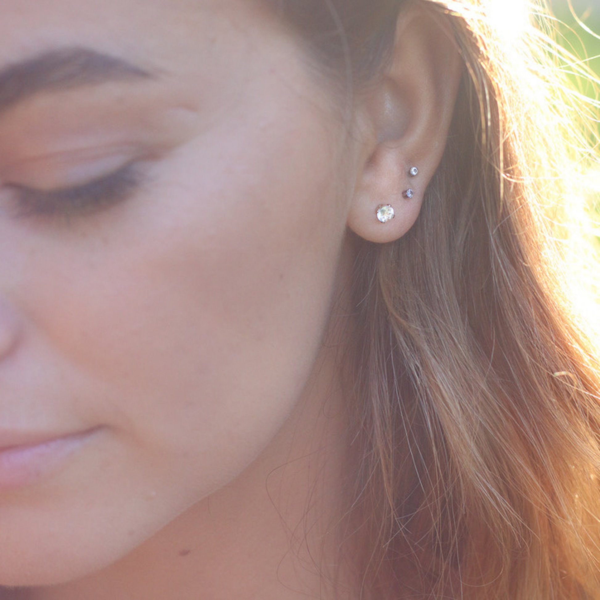 The Dot Stud Earrings (Medium) - Green Amethyst