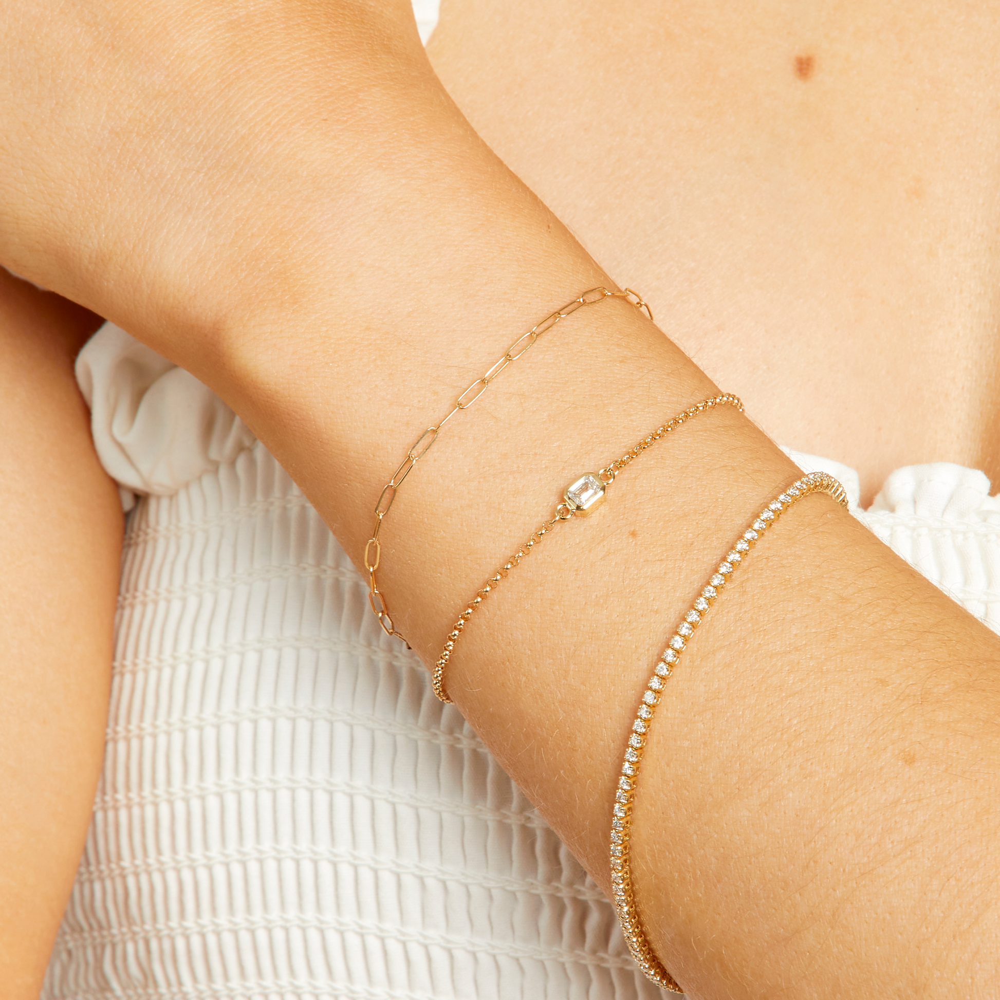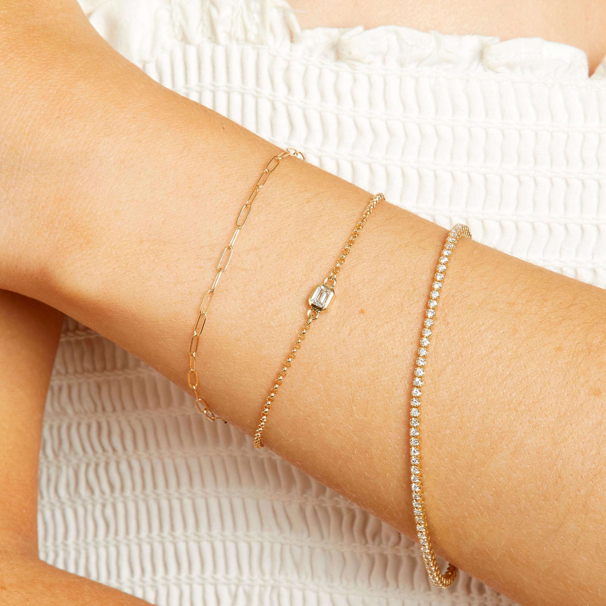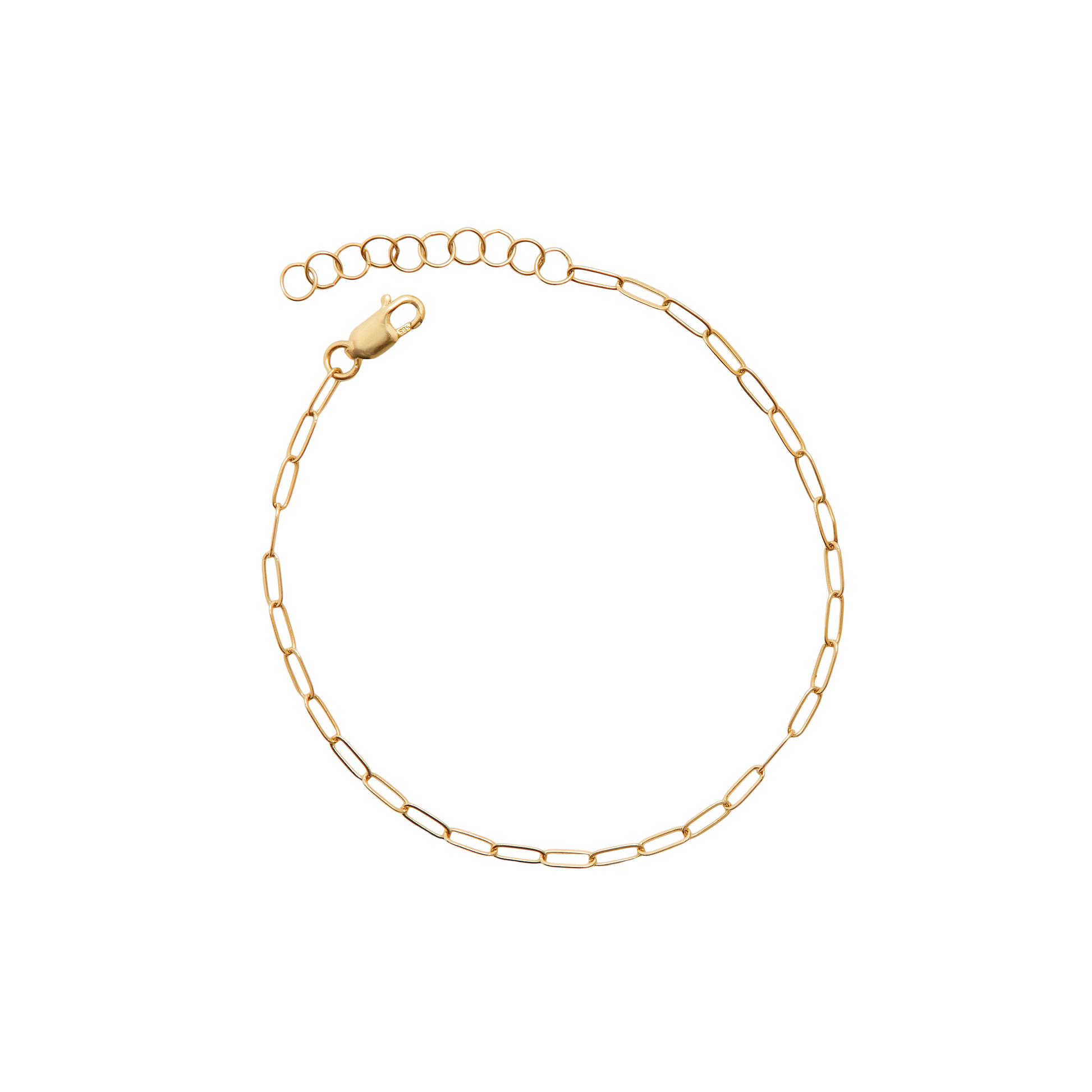 Solid gold paperclip chain bracelet.