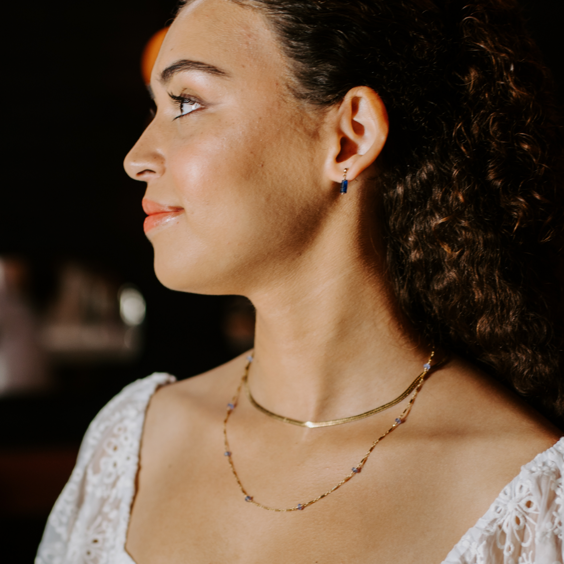 Add a pop of color to your look with these bright blue kyanite stones! Pair with our Nightingale Necklace for a classy, colorful look.