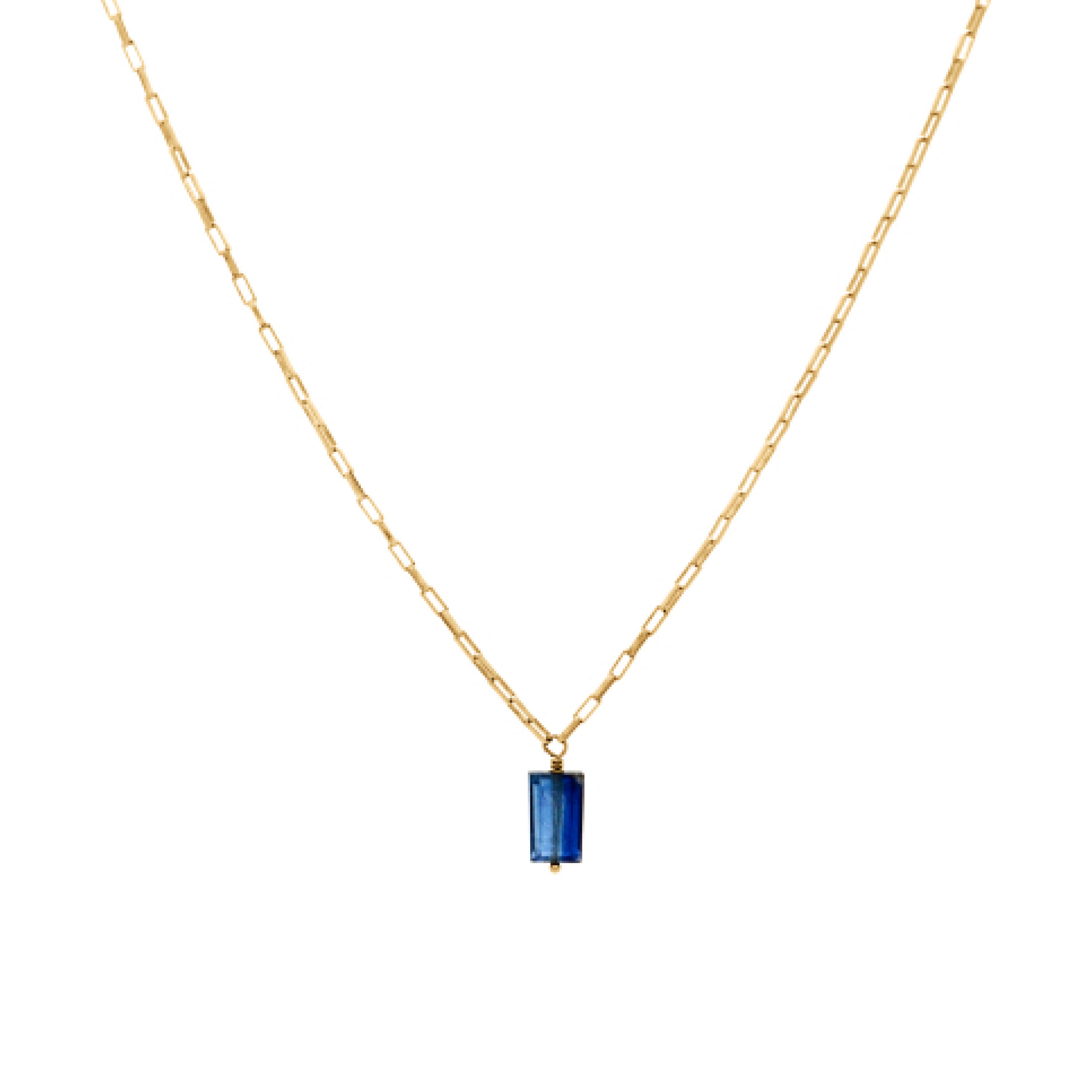 Dainty venetian box chain necklace with a rectangular blue kyanite