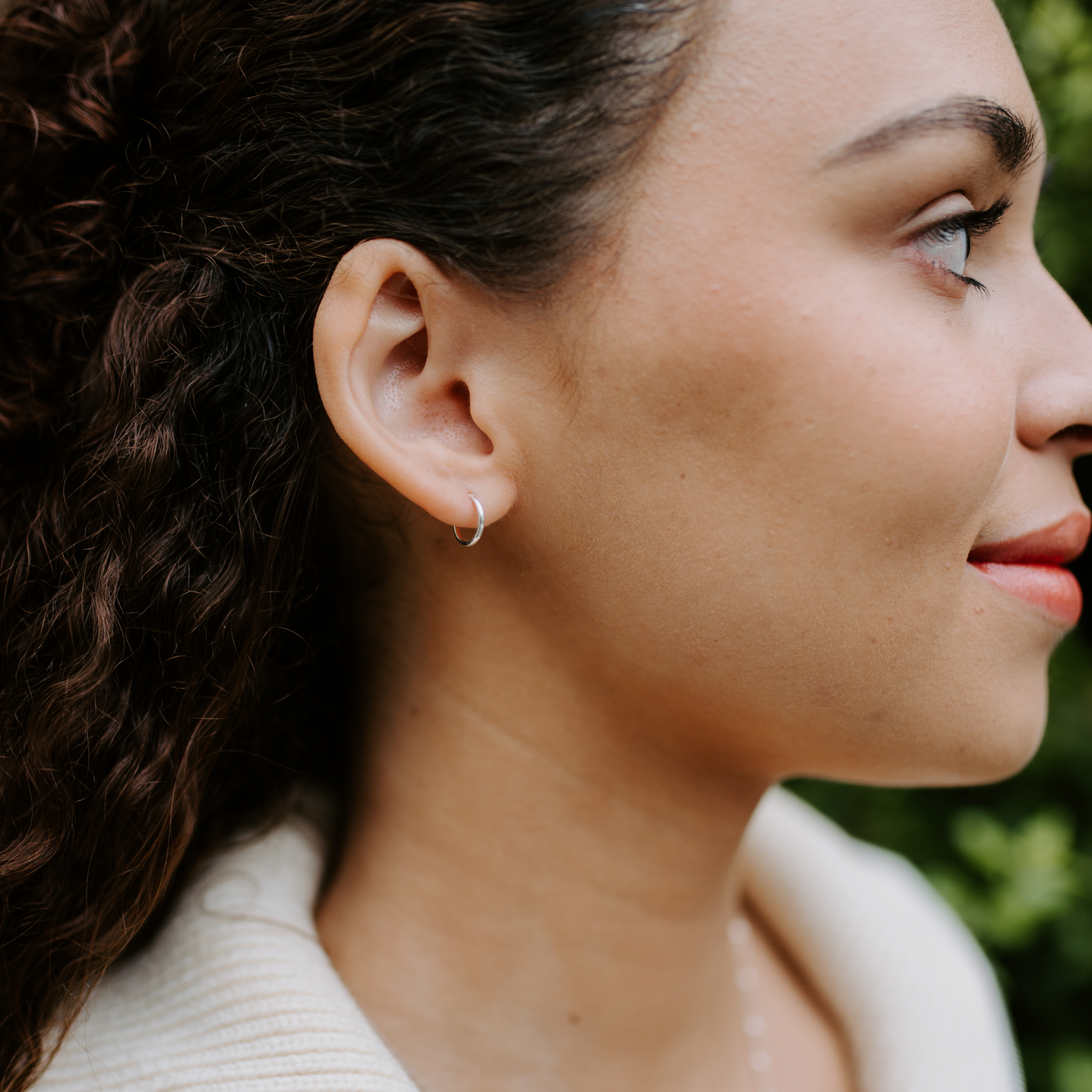 Sterling silver endless hoops.
