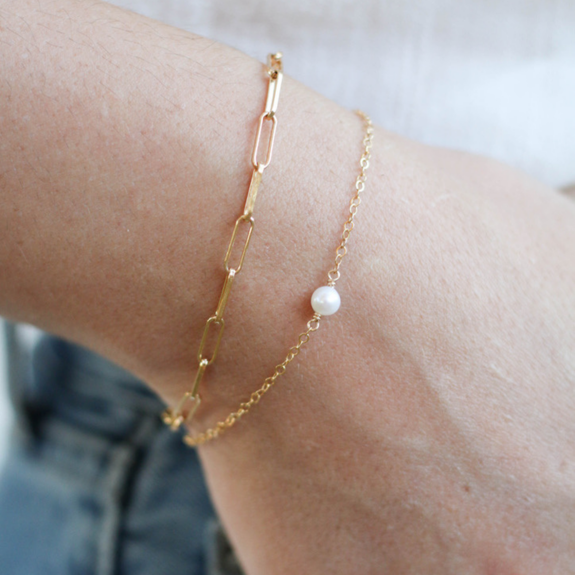 The quality of these pieces is just incredible, and this bracelet is no exception. Beautiful pearl with a strong chain, It's so dainty and looks great with my permanent gold bracelet. Perfect!