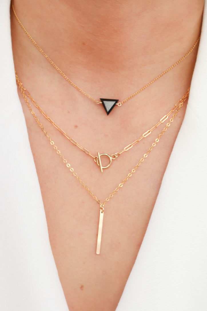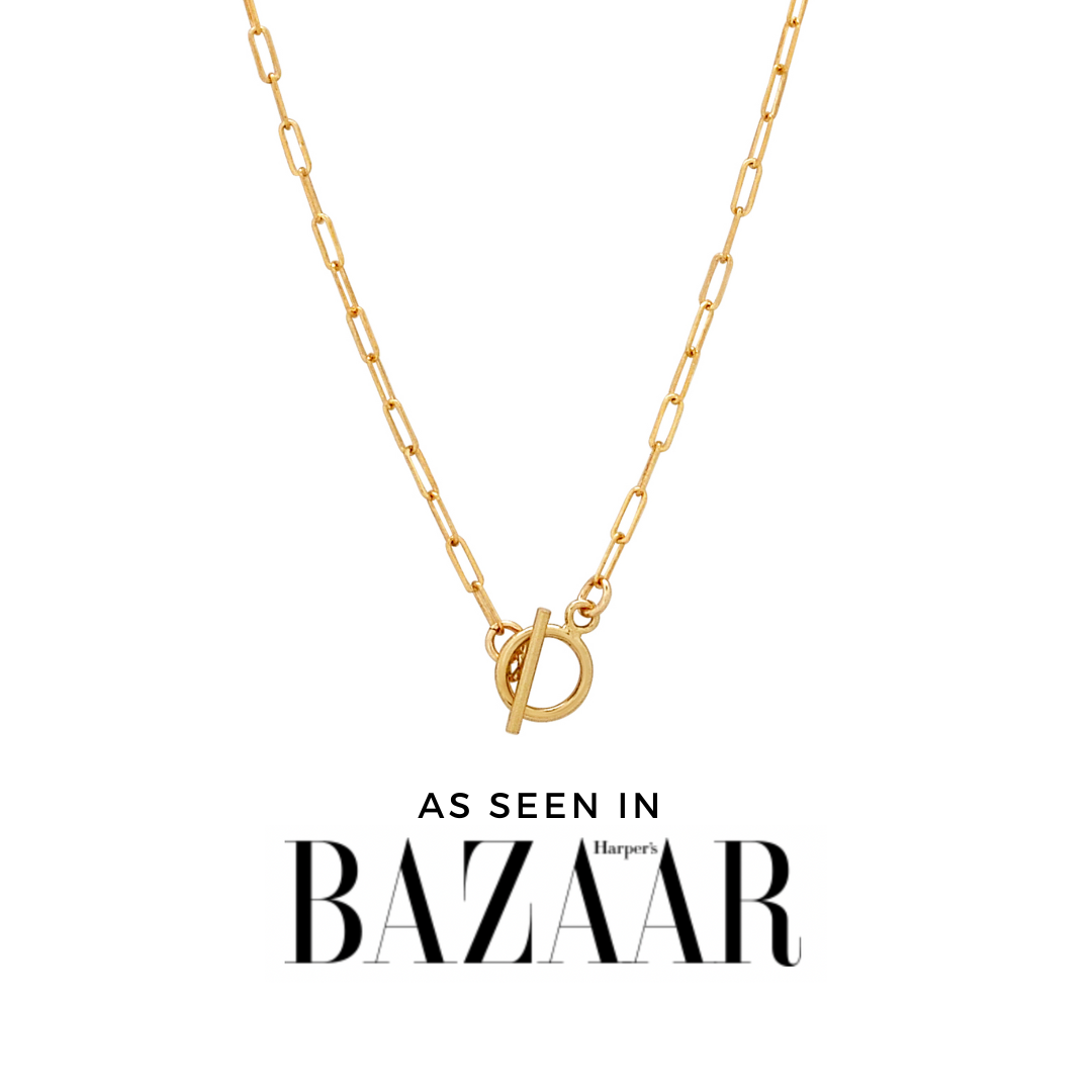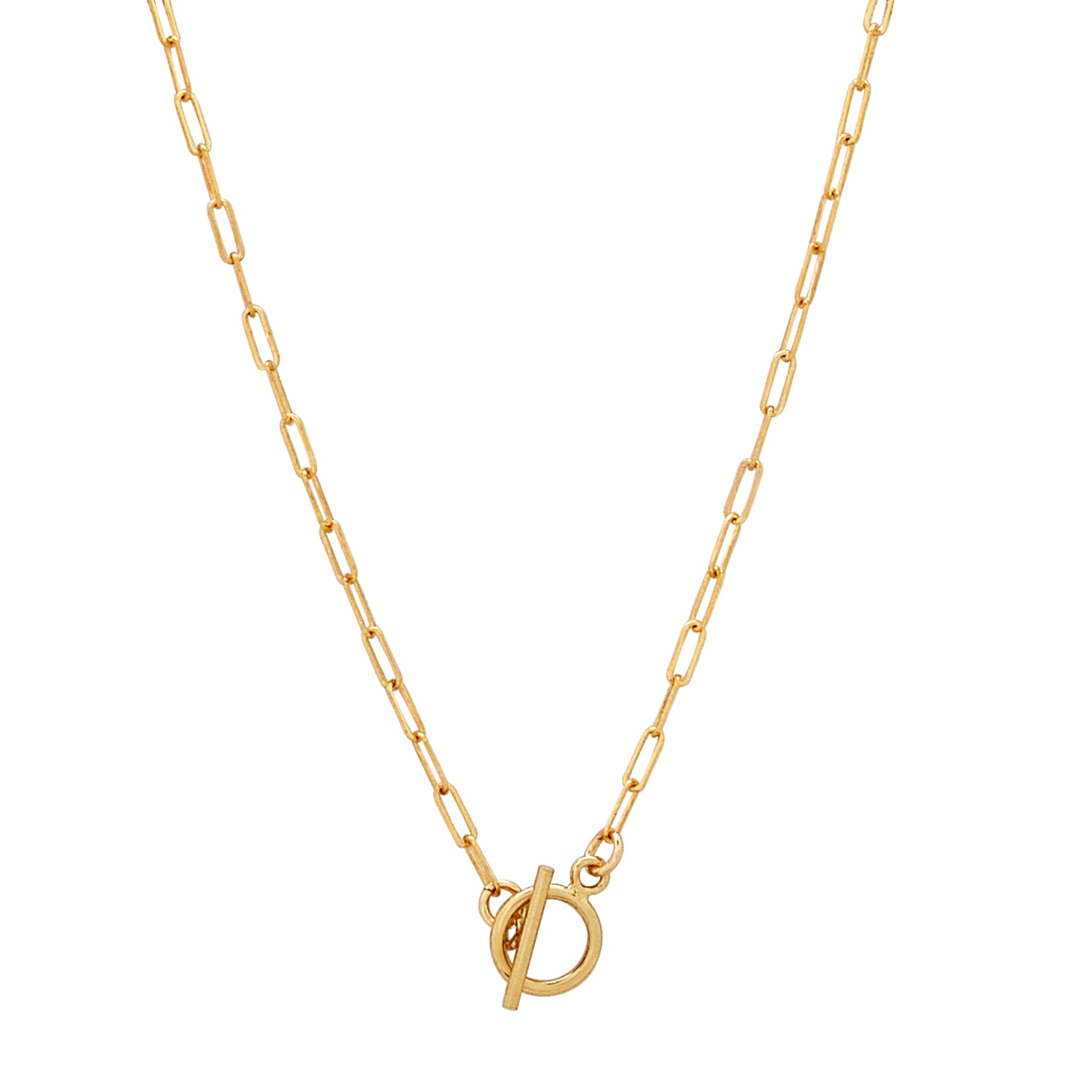 This toggle clasp makes the perfect accent! Paired with the trending paperclip chain you will look incredibly chic in this necklace.