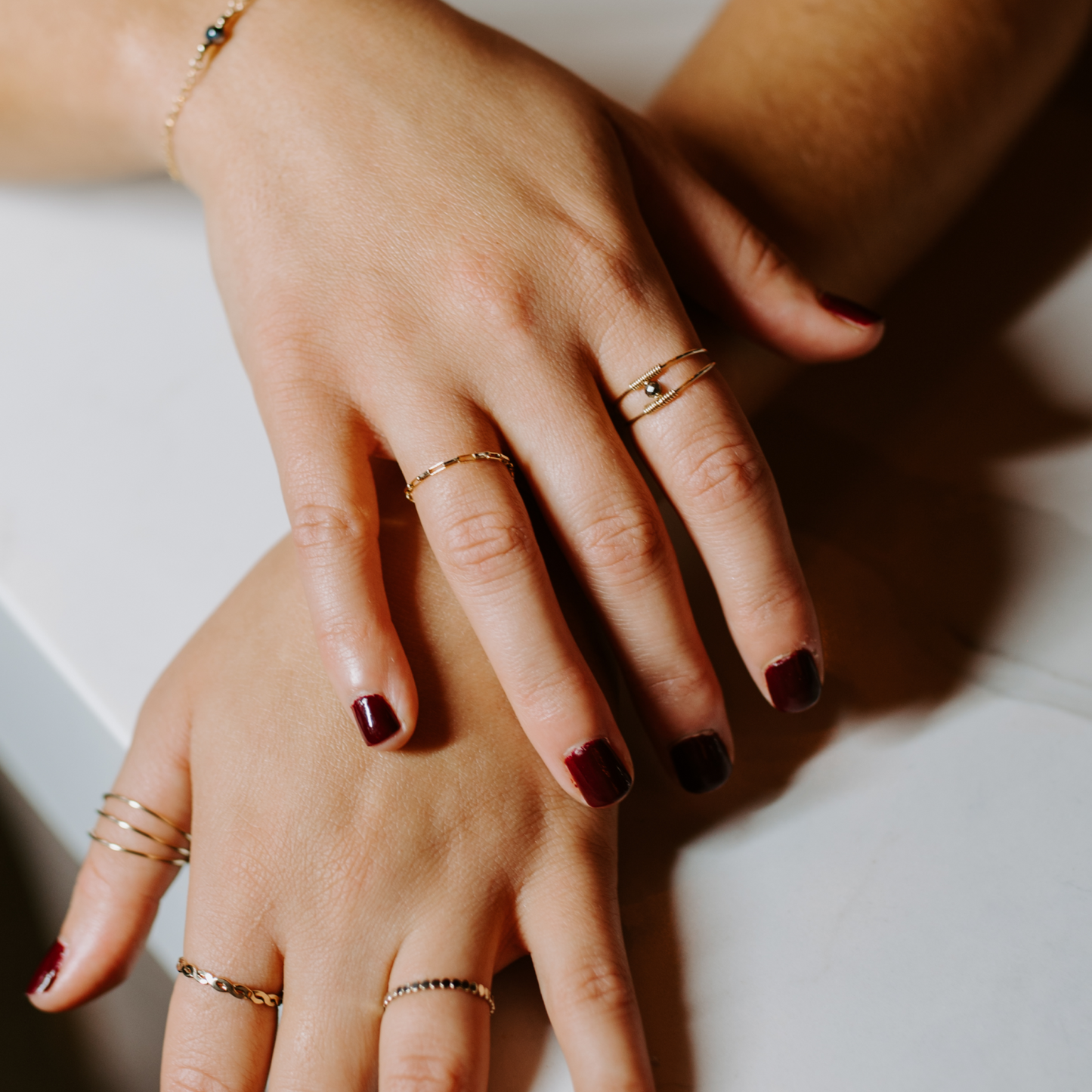 I rarely write reviews, but I had to share my experience! Last November, I bought two Venetian Rings from the store, I wear them every day. I get so many compliments. I work in a hospital where I wash my hands or use hand sanitizer every 1-2 minutes for 13 hours a day. The rings still look as perfect as the day I bought them—the color hasn’t changed at all!
