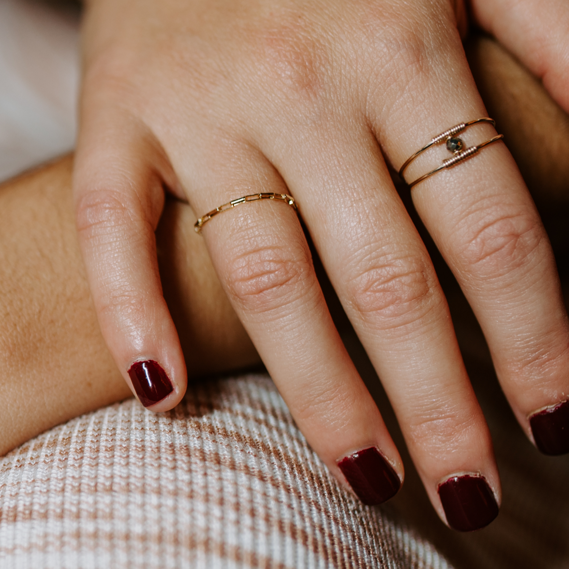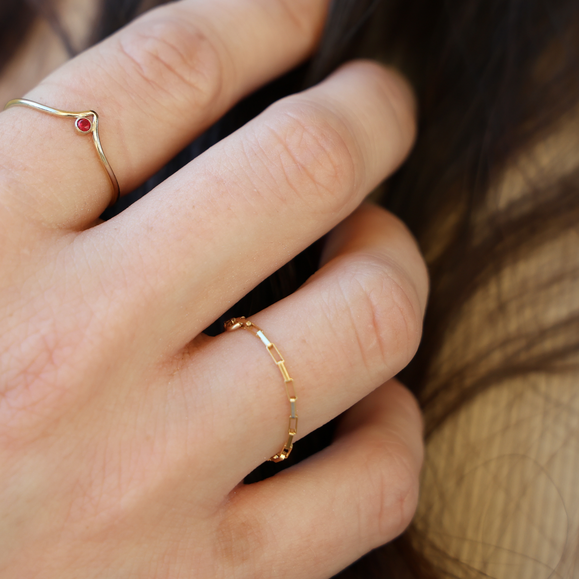Add a chic sparkle to your fingers with this versatile chain ring. Pair it with other rings, stack it, or wear it on your knuckle - the possibilities are endless!