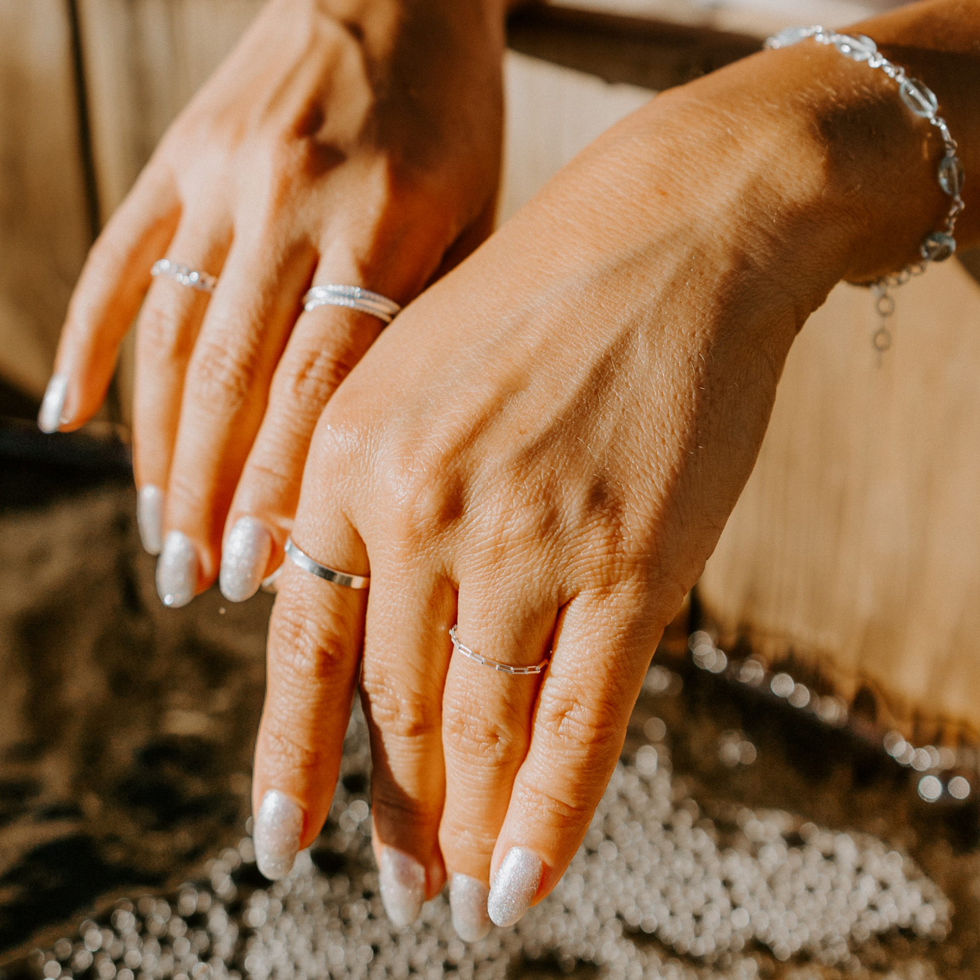 Our first & best-selling chain ring, now in silver! Add a chic sparkle to your fingers with this dainty chain ring. Pair it with other rings, stack it, or as a midi ring - the possibilities are endless!