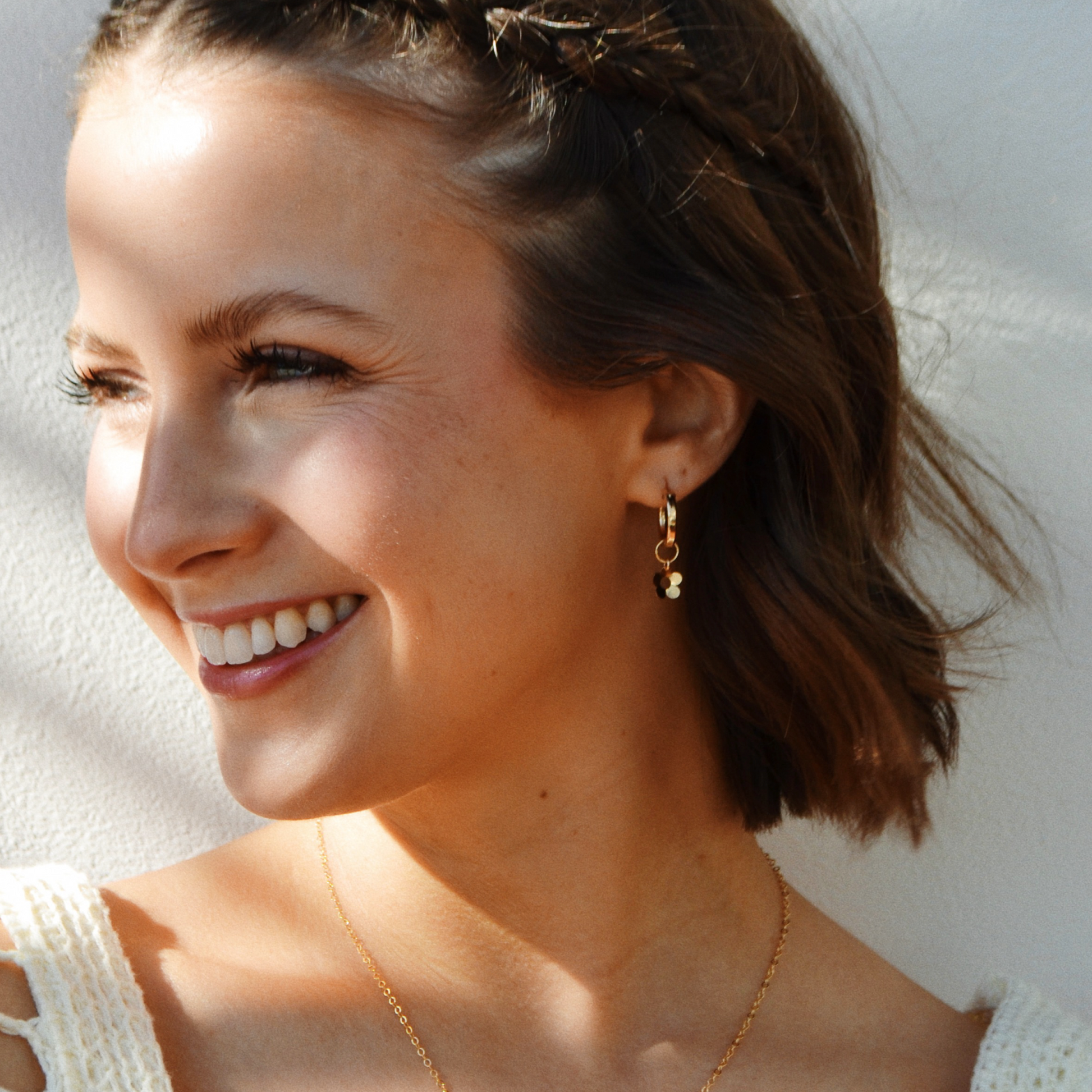 Our classic drop hoops - now available in a stunning new style. Like a breath of fresh air, these sweet earrings will be your spring and summer go-to! Pair them with your other ear stack or wear alone to instantly add a touch of youth and shine to any outfit.